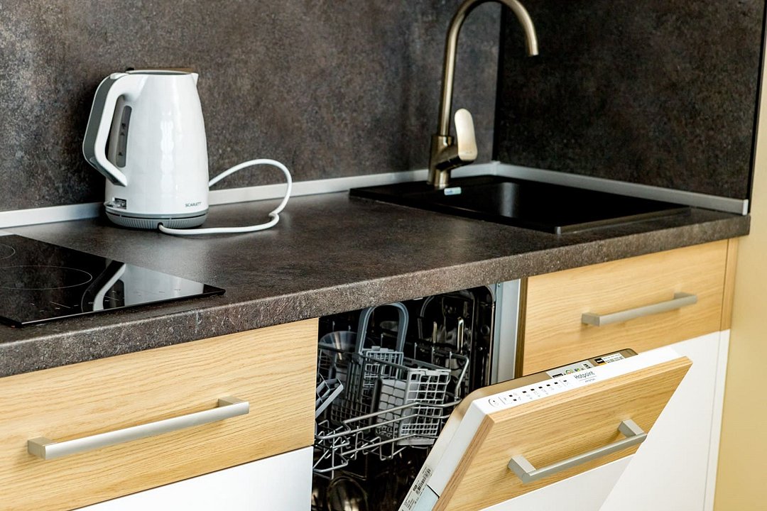 кабельное телевидение, Wi-Fi, холодильник, кондиционер, настольные лампы, фен, плита для приготовления пищи, микроволновая печь, утюг, ванная комната, санузел, водонагреватель, халаты, банные полотенца, тапочки, гигиенические средства, односпальная кровать, гладильная доска, шкаф для одежды, гардеробная, вешалки, обеденный стол, зеркало, ковер, кухня, сейф, посудомоечная машина, стиральная машина, чайник, отопление, душ, вид во двор, ламинат, кухонная посуда, стаканы, столовые приборы, стиральная машина и сушилка, стул, тумба, туалет, сушилка для белья, шкаф-купе, телевизор со Smart TV, гигиенический душ, уборка номера, вешалки-плечики, мыло, без питомцевВ номере