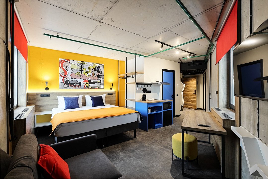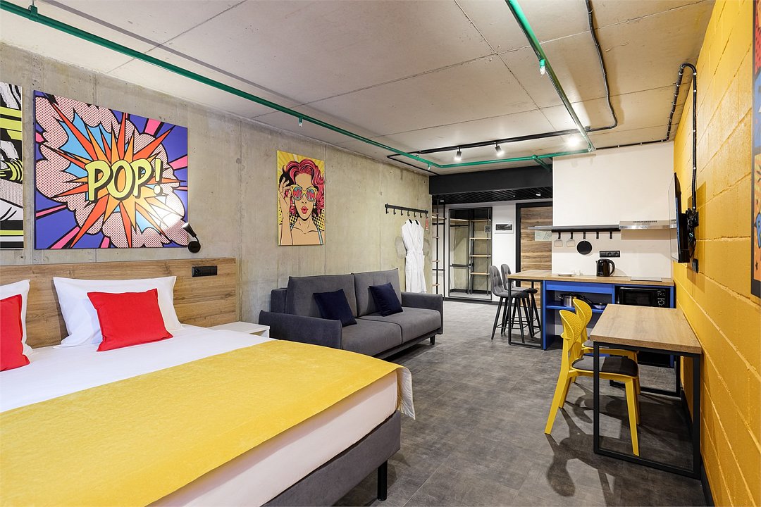 Тот самый случай, когда номер и все в нем вызывает привыкание. Заезжаешь в Superior и пропадаешь в его сетях, растворяешься в его пространстве полностью. Мегакомфортная кровать KING с удобными ортопедическими матрасами, диван, рабочая зона для креатива, кухонная зона, сверхбыстрый бесплатный Wi-Fi, ТВ с плоским экраном, ультрасовременное освещение и система кондиционирования воздуха, которые можно регулировать через фирменное мобильное приложение. Жить одному, вдвоем, втроем – не важно. Гибкая организация пространства дает возможность каждому из вас проводить свой досуг как удобно.Услуги и удобства