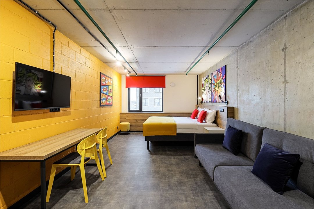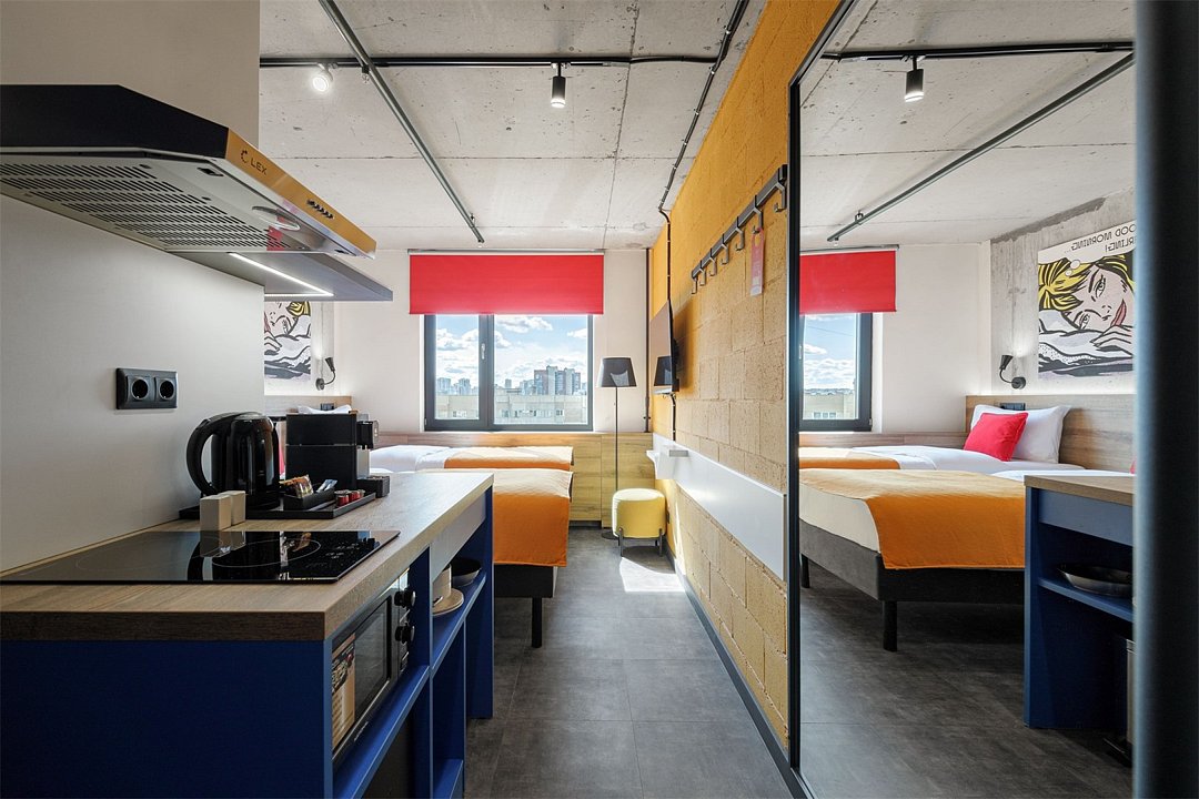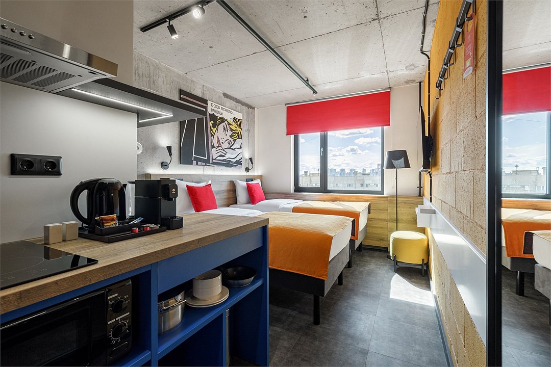 Хочется больше простора для полета мыслей и качественного отдыха? Мы расширили для вас номер Comfort, чтобы вы могли пошерить его со своим другом/подругой/мужем/женой/cобакой и далее по списку. Работать, танцевать, готовить в кухонной зоне, устроить фотосессию (дизайн располагает), смотреть фильм или заземлиться на йоге – удобное зонирование пространства позволяет заниматься всем, чем угодно вместе или по отдельности. Сверхбыстрый бесплатный Wi-Fi, ТВ с плоским экраном, ультрасовременное освещение и система кондиционирования воздуха, которые можно регулировать через фирменное мобильное приложение. В номере может быть как двуспальная кровать, так и две односпальные.Услуги и удобства