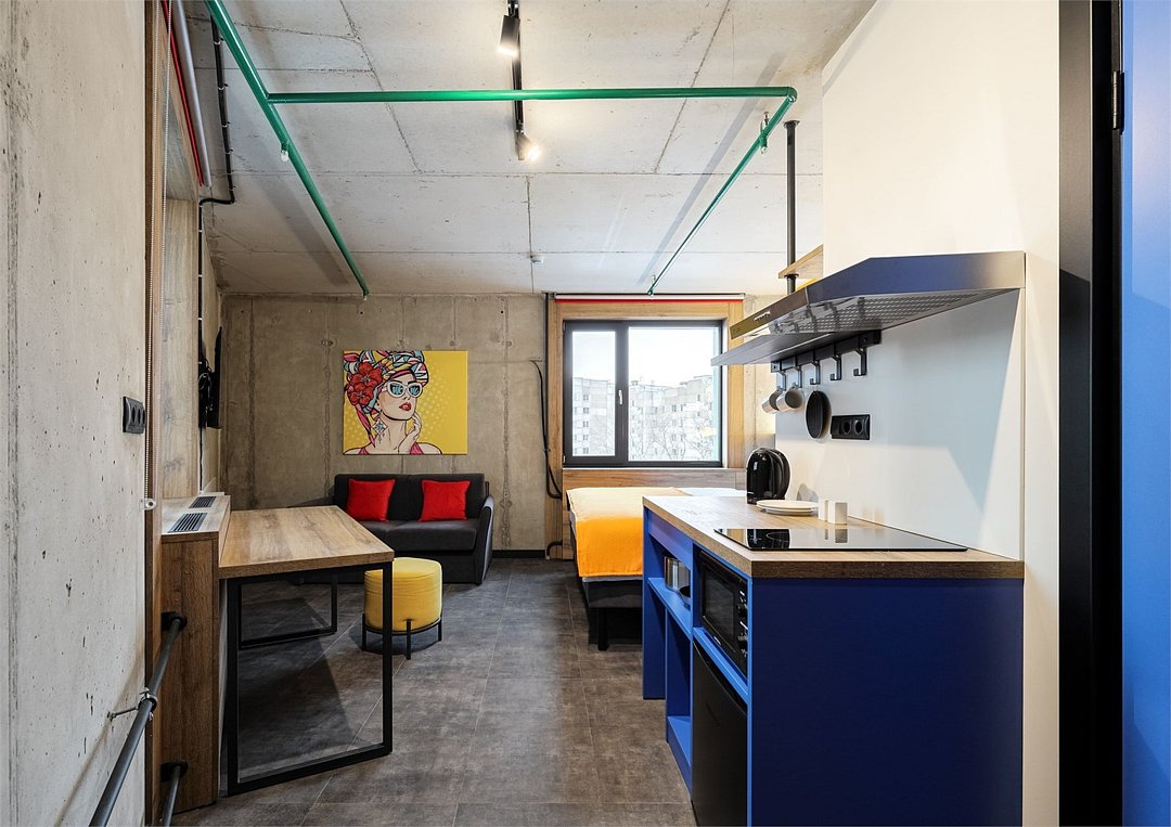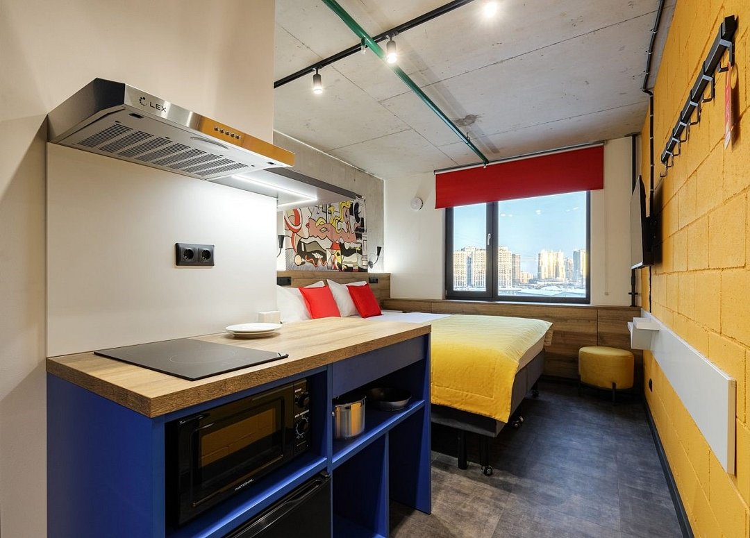 Скажите же, есть какая-то нотка романтики в путешествиях одному? Приезжаешь с дороги, сбрасываешь свою модную футболку, прыгаешь в объятия роскошной белоснежной кровати с ортопедическим матрасом, берешь телефон и через приложение приглушаешь свет, включаешь сериал на ТВ с 43 дюймовым плазменным дисплеем. Под рукой кухонная зона, где можно приготовить завтрак/обед/ужин, кондиционер, сверхбыстрый Wi-Fi и и все завидуют, пускай, ведь жить станет в кайф, what a beautiful life!Услуги и удобства