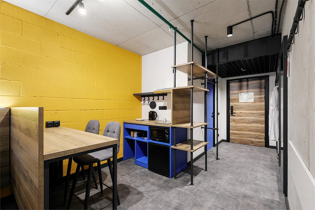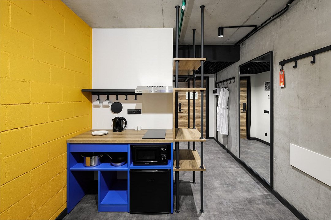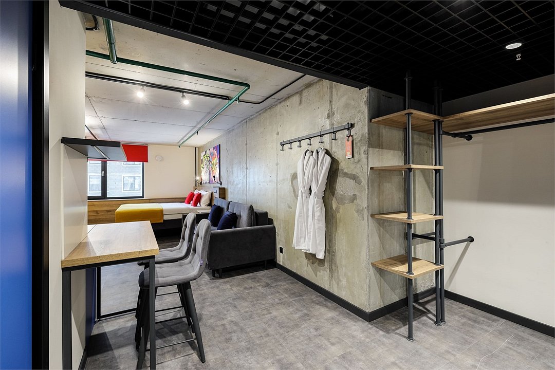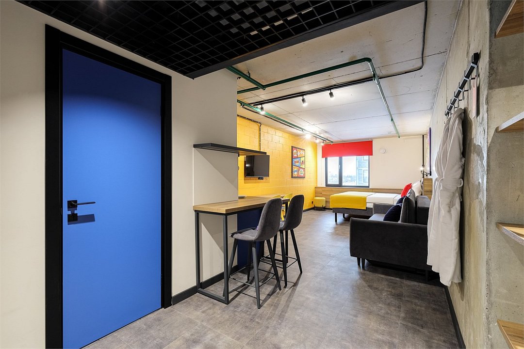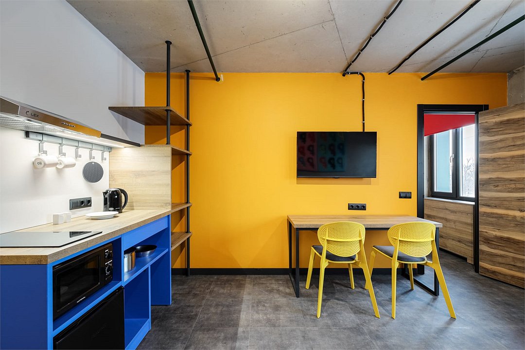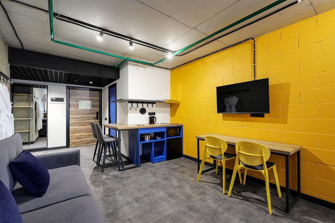 Хочется больше простора для полета мыслей и качественного отдыха? Мы расширили для вас номер Comfort, чтобы вы могли пошерить его со своим другом/подругой/мужем/женой/cобакой и далее по списку. Работать, танцевать, готовить в кухонной зоне, устроить фотосессию (дизайн располагает), смотреть фильм или заземлиться на йоге – удобное зонирование пространства позволяет заниматься всем, чем угодно вместе или по отдельности. Сверхбыстрый бесплатный Wi-Fi, ТВ с плоским экраном, ультрасовременное освещение и система кондиционирования воздуха, которые можно регулировать через фирменное мобильное приложение.Услуги и удобства