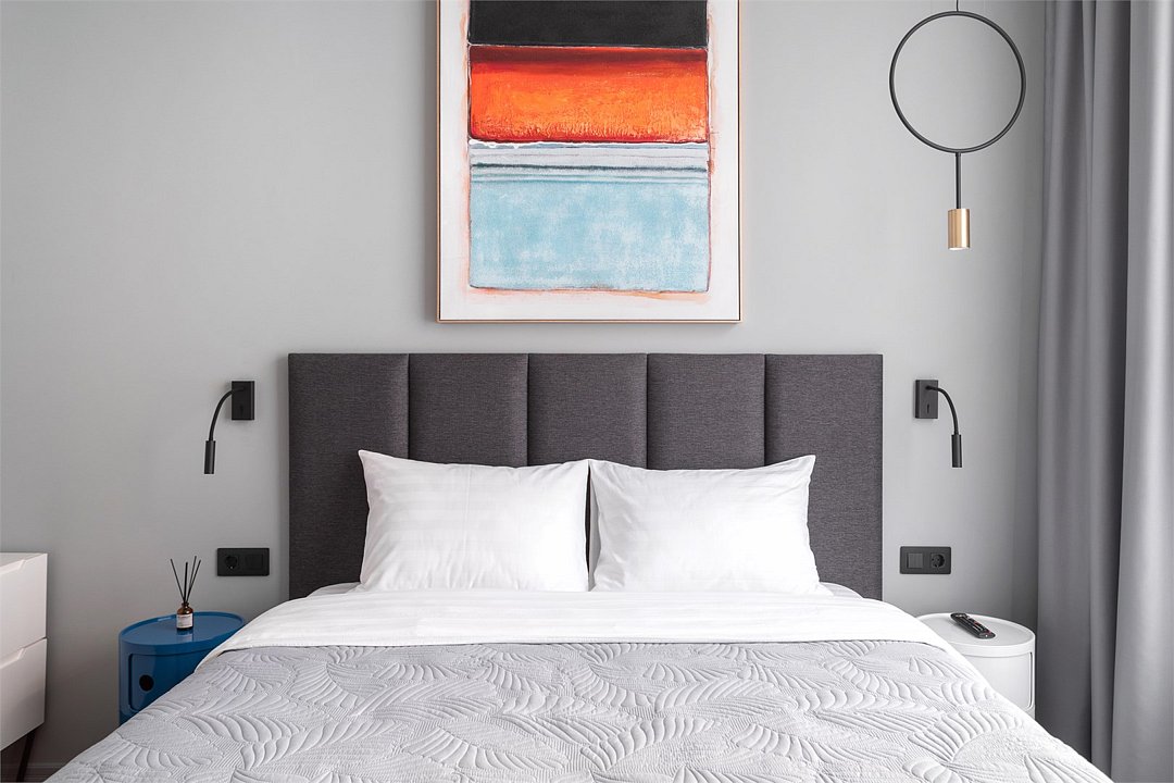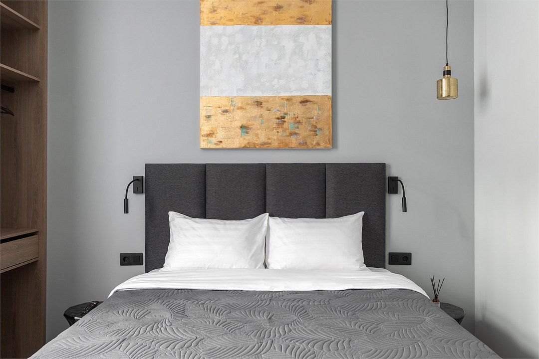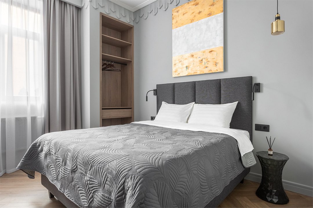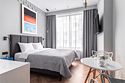 телевизор, Wi-Fi, кондиционер, фен, электронные замки, плита для приготовления пищи, кофемашина, ванная комната, душевая кабина, санузел, халаты, банные полотенца, тапочки, двуспальная кровать, стулья, шкаф для одежды, вешалки, обеденный стол, зеркало, комод, мебельный гарнитур, чайный набор, набор посуды, чайник, унитаз, раковина, обеденная зона, отопление, душ, вид на город, кухонная посуда, стаканы, кухонная утварь, столовые приборы, стол, тумба, туалетные средства, туалет, мини-холодильник, мини-кухня, кухонный уголок, телевизор со Smart TV, номер для некурящих, вешалки-плечики, мыло, затемняющая штора, без питомцевВ номере