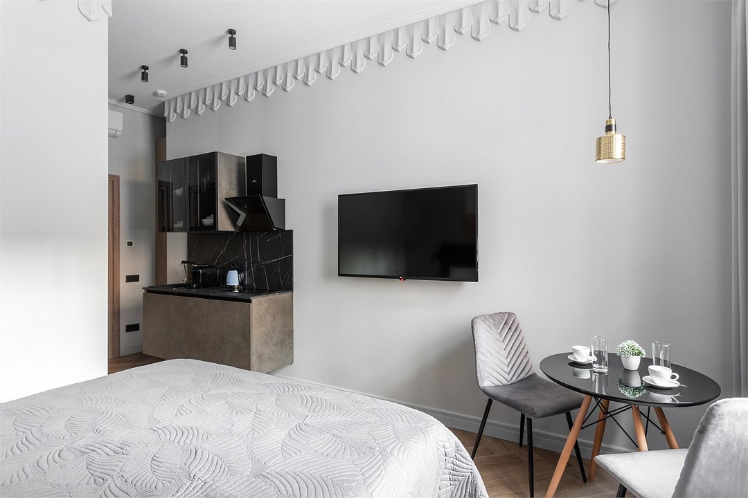 телевизор, Wi-Fi, кондиционер, фен, электронные замки, плита для приготовления пищи, кофемашина, ванная комната, душевая кабина, санузел, банные полотенца, тапочки, двуспальная кровать, стулья, шкаф для одежды, вешалки, журнальный столик, обеденный стол, зеркало, чайный набор, набор посуды, чайник, унитаз, раковина, обеденная зона, отопление, душ, вид на город, кухонная посуда, стаканы, столовые приборы, стул, стол, туалетные средства, туалет, мини-холодильник, мини-кухня, кухонный уголок, телевизор со Smart TV, номер для некурящих, вешалки-плечики, мыло, затемняющая штора, открытый шкаф, без питомцевВ номере