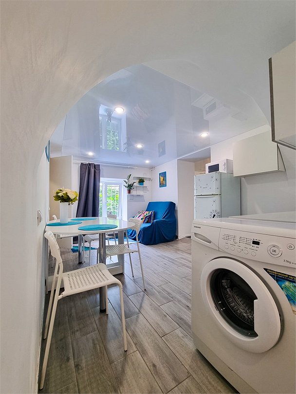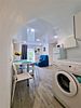 Wi-Fi, интернет, холодильник, фен, вентилятор, плита для приготовления пищи, микроволновая печь, утюг, обогреватель, санузел, водонагреватель, двуспальная кровать, гладильная доска, стулья, вешалки, обеденный стол, зеркало, набор посуды, стиральная машина, раковина, ковровое покрытие, душ, плиточное покрытие, стаканы, столовые приборы, сушилка для белья, диван-кровать, мини-кухня, телевизор со Smart TV, номер для некурящих, угловой диван-кровать, вешалки-плечики, без видаВ студии