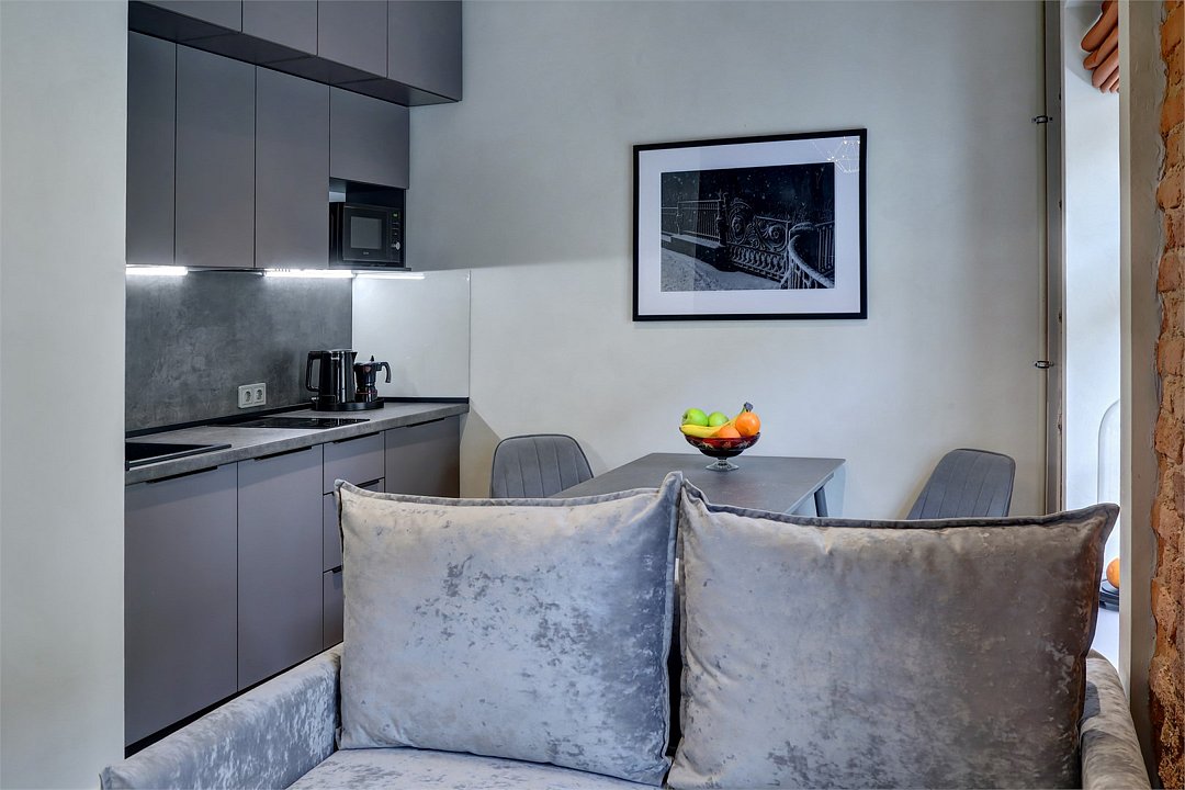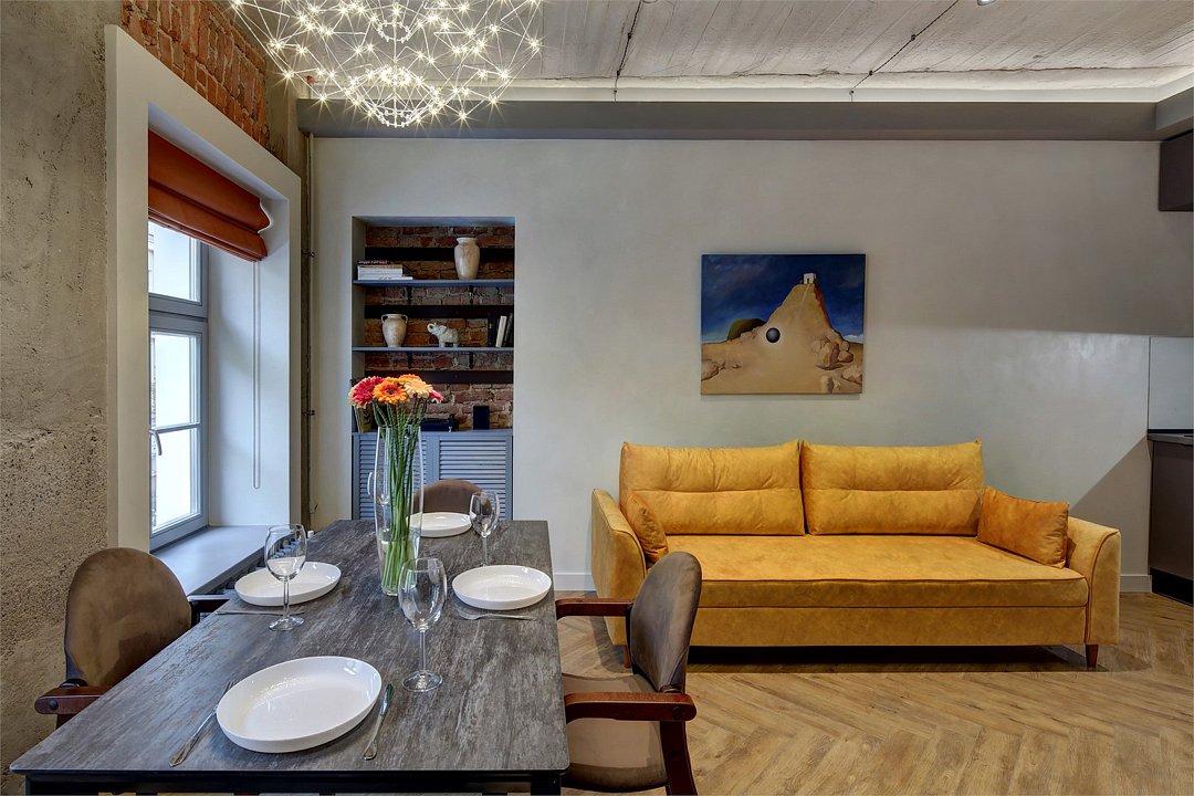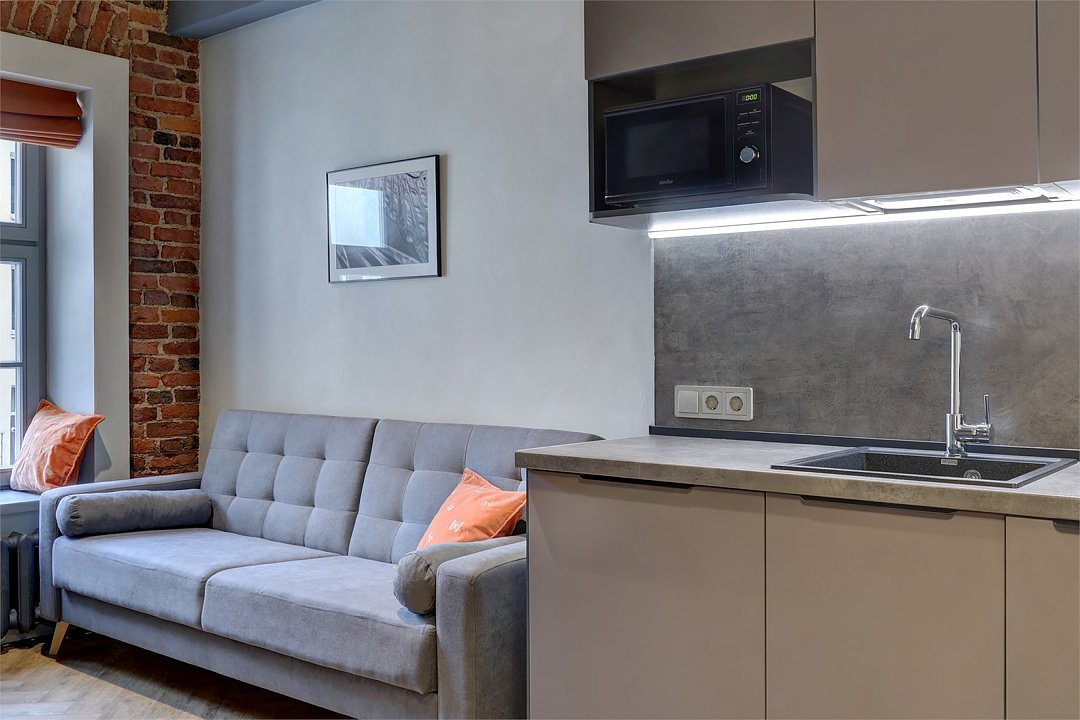 Мы рады предложить просторные квартиры-апартаменты площадью 37 кв.м. с прекрасных оформлением и отличной планировкой, рассчитанные на проживание до 4 гостей включительно. Теплая цветовая гамма интерьера в сочетании с элементами Loft, уникальная комплектация и дизайнерская мебель передают особенную атмосферу современного и классического Санкт-Петербурга. Приятным акцентом для Вас станет оригинальное и продуманное освещение. Апартаменты включают в себя: - стильную гостиную с мягкой мебелью и смарт-ТВ; - оборудованную кухню с плитой и столовую зону; - уютную спальню с комфортной кроватью и высококачественными постельными принадлежностями, дополнительное место на удобном диване; - просторную ванную комнату с душем. Важно! При заселении вносится оплата за весь срок проживания и страховой залог - 5000 руб. Страховой залог возвращается в течении 2 (двух) суток после выезда на указанные Вами реквизиты (залог не возвращается в случае нарушения договора аренды и правил проживания).Услуги и удобства