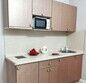 - кухонный уголок (индукционная варочная поверхность, чайник, микроволновка, холодильник, вся необходимая посуда);
