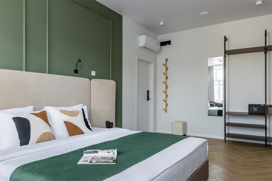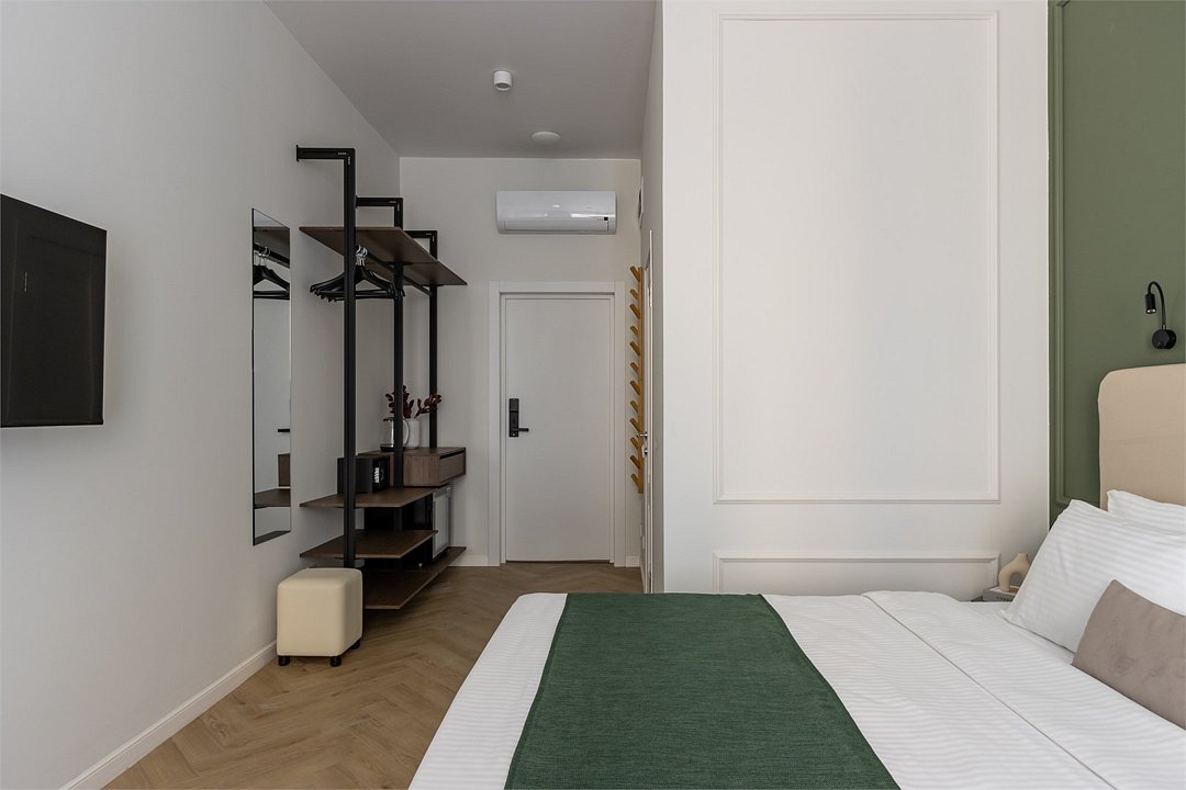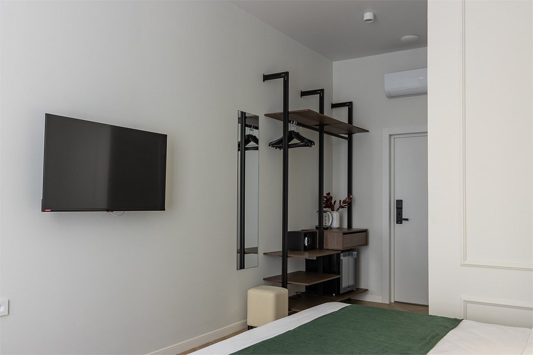 телевизор, кабельное телевидение, Wi-Fi, интернет, кондиционер, светильник, фен, электронные замки, ванная комната, душевая кабина, санузел, тапочки, косметические средства, двуспальная кровать, кресла, тумбы, шкаф для одежды, журнальный столик, зеркало, чайный набор, сейф, чайник, унитаз, раковина, косметическое зеркало, питьевая вода, отопление, душ, вид на город, кулер на этаже, вид во двор, стол, тумба, туалетные средства, туалет, телевизор с плоским экраном, мини-холодильник, москитная сетка, номер для некурящих, пуфик, чайная станция, уборка номера, набор для приготовления чая и кофе, вешалки-плечики, бутилированная вода, мыло, затемняющая штора, зеркало в полный рост, можно с питомцамиВ номере