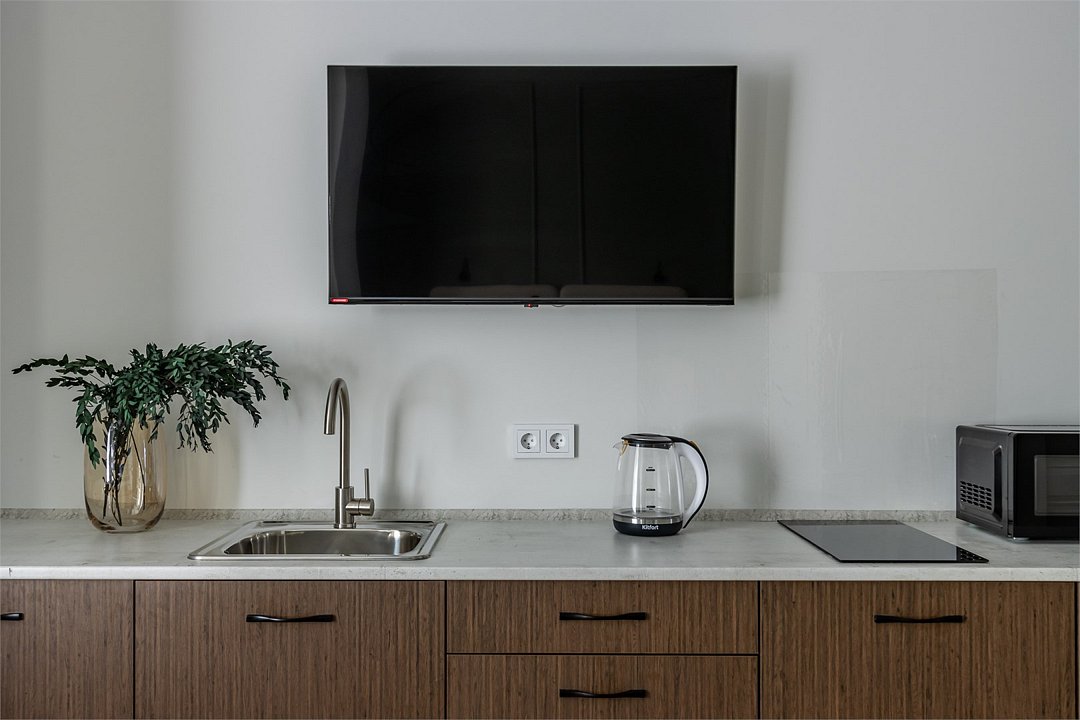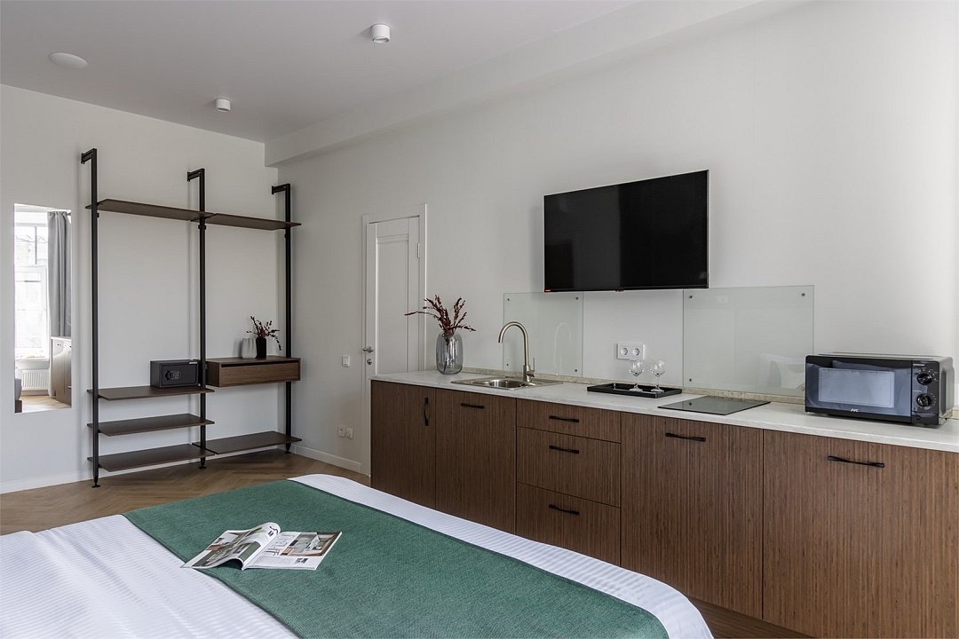 телевизор, кабельное телевидение, Wi-Fi, интернет, кондиционер, светильник, фен, электронные замки, плита для приготовления пищи, микроволновая печь, душевая кабина, санузел, тапочки, косметические средства, двуспальная кровать, кресла, тумбы, шкаф для одежды, журнальный столик, зеркало, кухня, чайный набор, набор посуды, сейф, чайник, унитаз, раковина, косметическое зеркало, питьевая вода, обеденная зона, отопление, душ, вид на город, кулер на этаже, кухонная посуда, стаканы, кухонная утварь, столовые приборы, стол, туалетные средства, туалет, телевизор с плоским экраном, мини-холодильник, мини-кухня, кухонный уголок, москитная сетка, номер для некурящих, пуфик, чайная станция, уборка номера, набор для приготовления чая и кофе, вешалки-плечики, бутилированная вода, мыло, затемняющая штора, зеркало в полный рост, можно с питомцамиВ номере