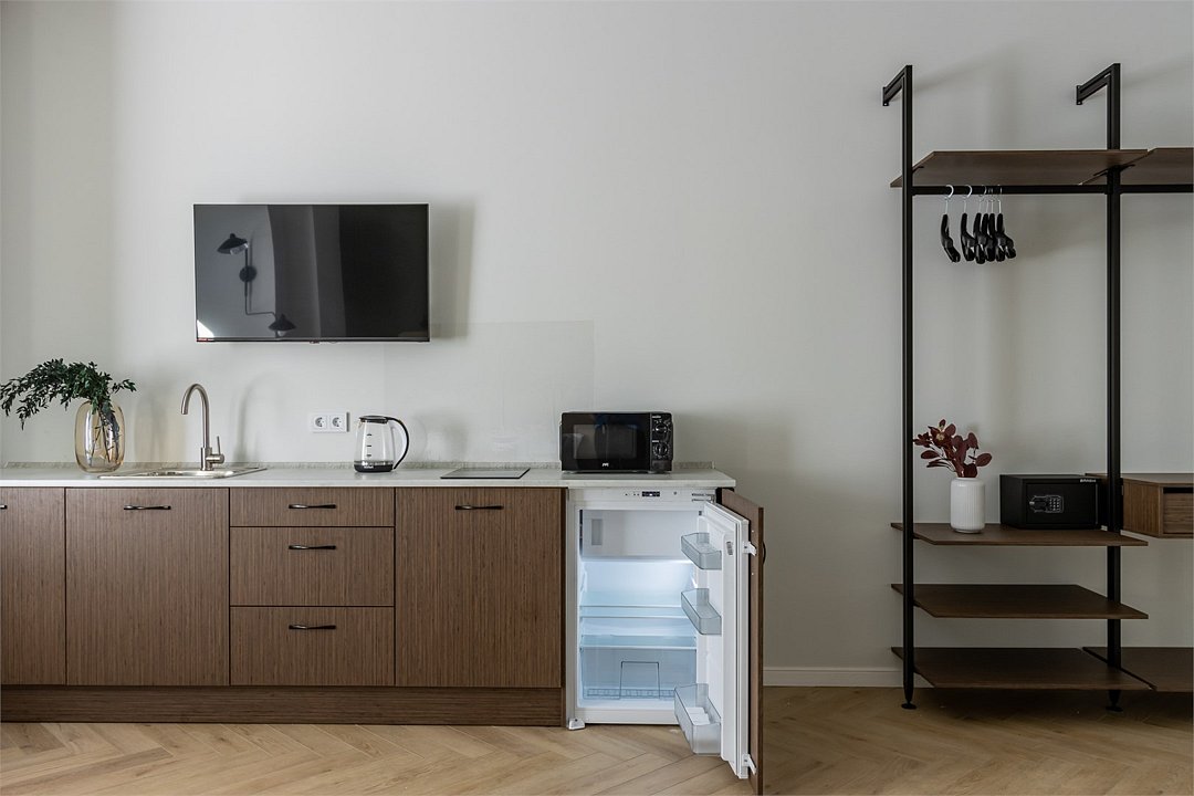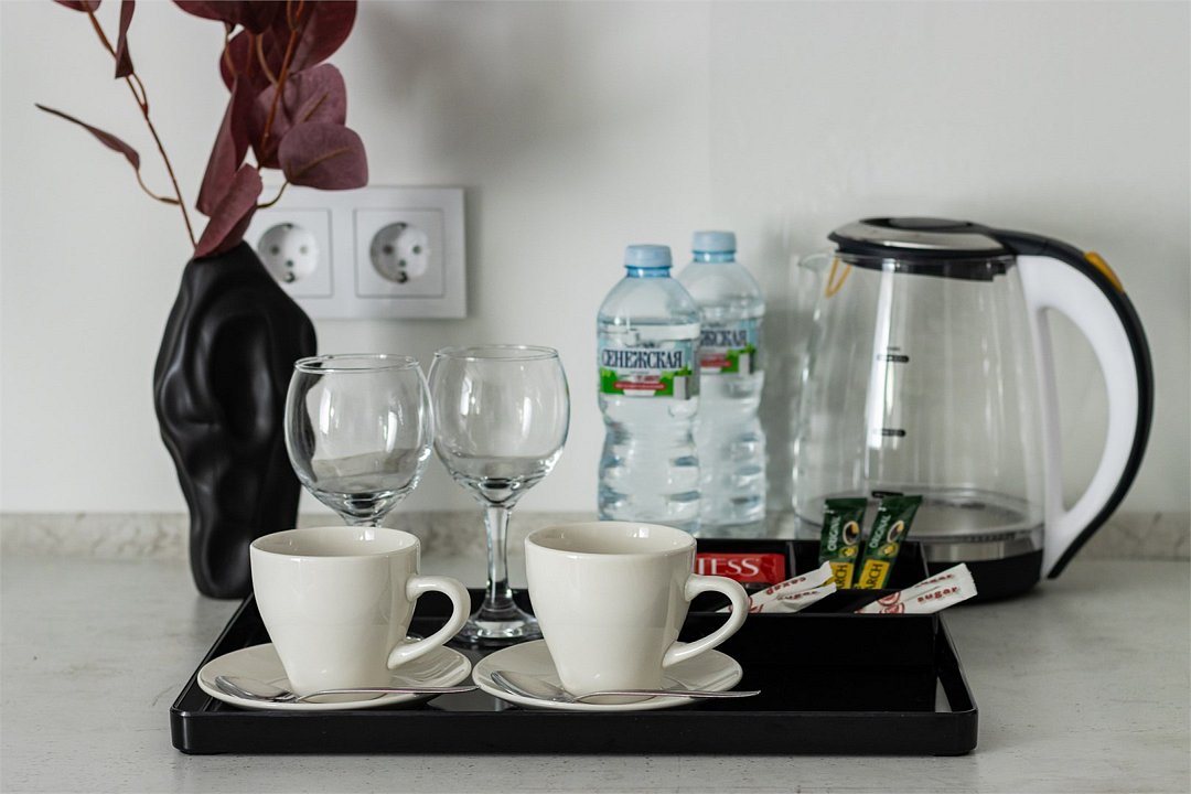 телевизор, кабельное телевидение, Wi-Fi, интернет, кондиционер, светильник, фен, электронные замки, плита для приготовления пищи, микроволновая печь, душевая кабина, санузел, тапочки, косметические средства, двуспальная кровать, кресла, тумбы, шкаф для одежды, журнальный столик, зеркало, кухня, чайный набор, набор посуды, сейф, чайник, унитаз, раковина, косметическое зеркало, питьевая вода, обеденная зона, отопление, душ, вид на город, кулер на этаже, вид во двор, кухонная посуда, стаканы, кухонная утварь, столовые приборы, стол, туалетные средства, туалет, телевизор с плоским экраном, мини-холодильник, мини-кухня, кухонный уголок, москитная сетка, номер для некурящих, пуфик, чайная станция, уборка номера, набор для приготовления чая и кофе, вешалки-плечики, бутилированная вода, мыло, затемняющая штора, зеркало в полный рост, можно с питомцамиВ номере