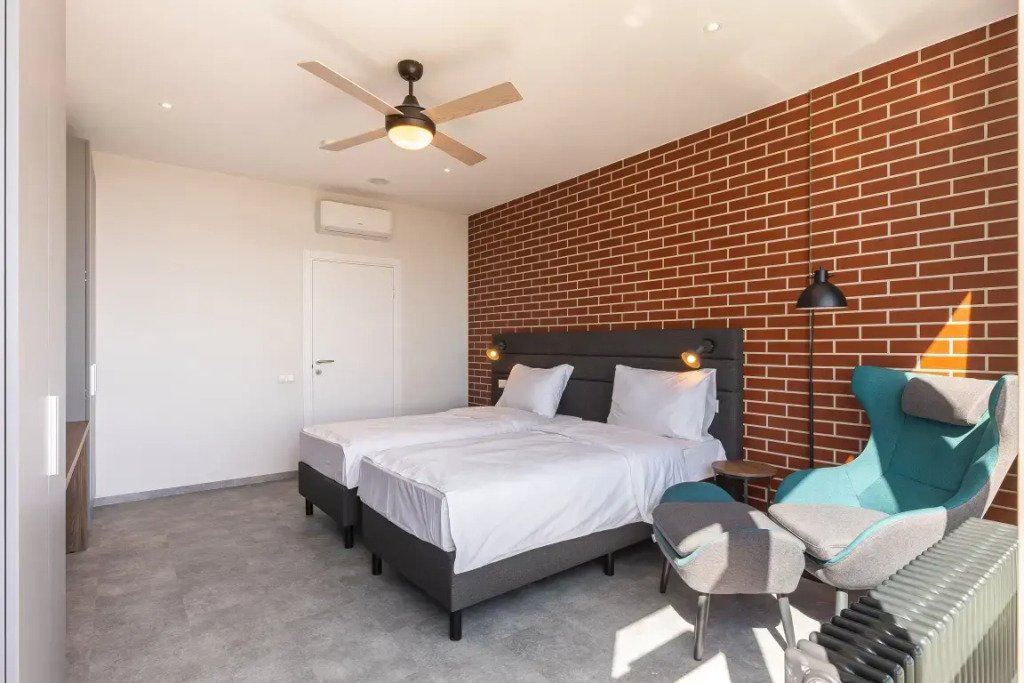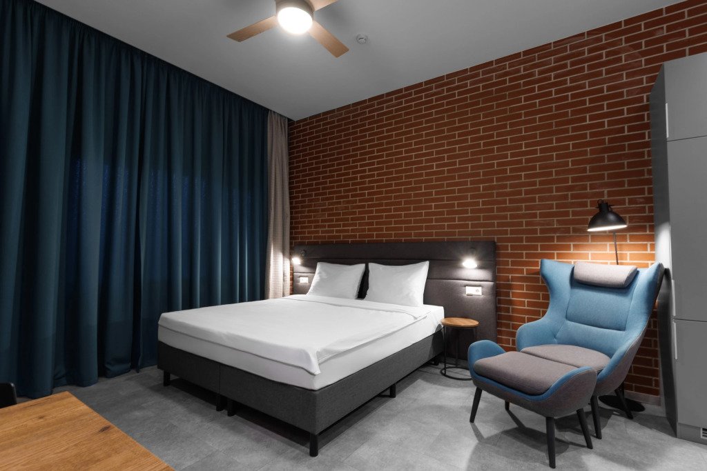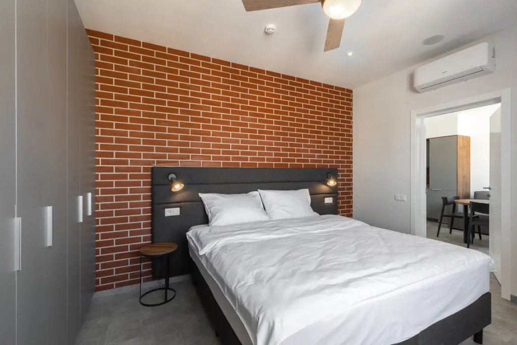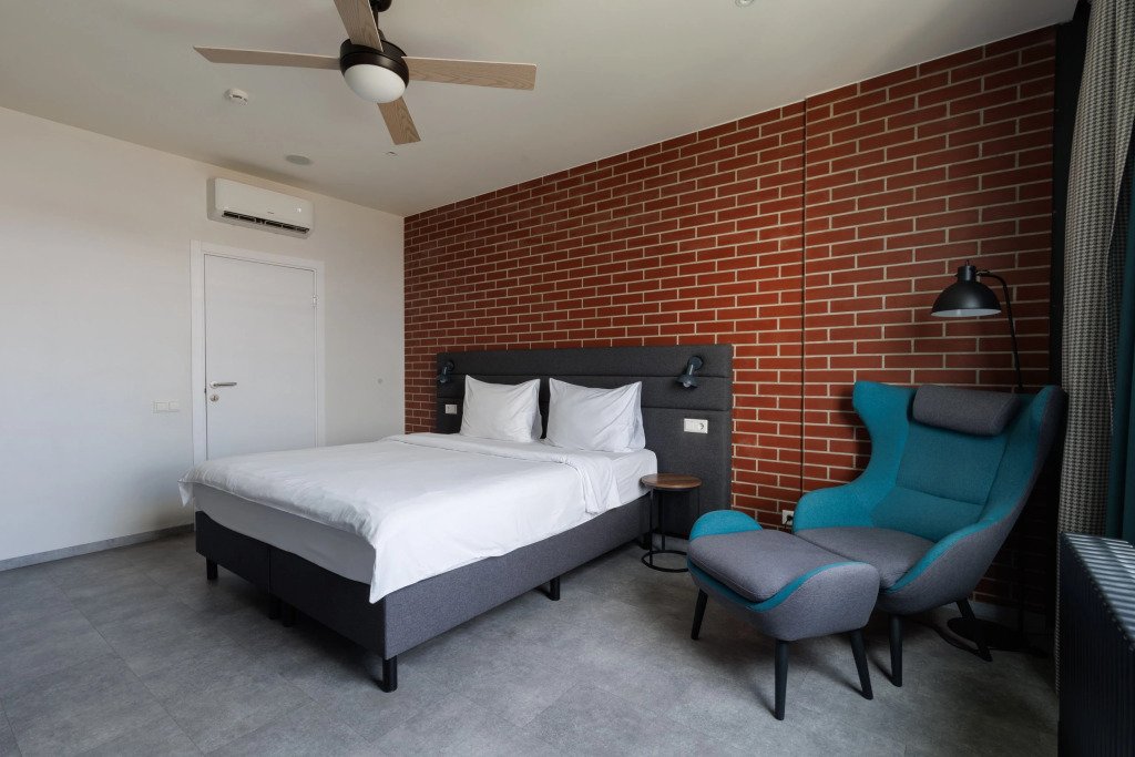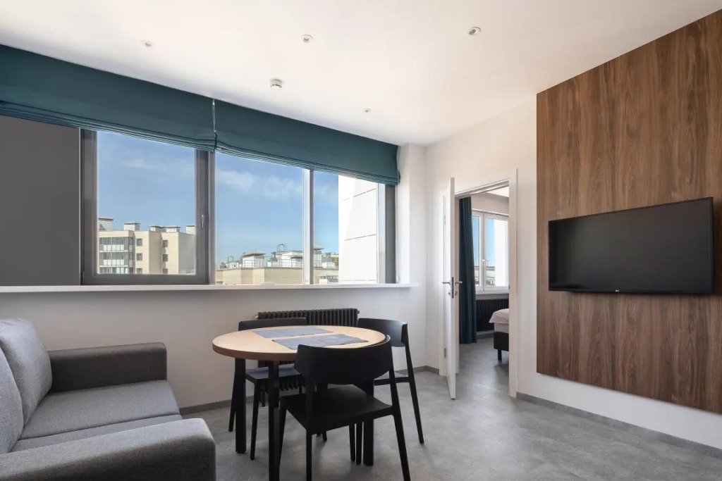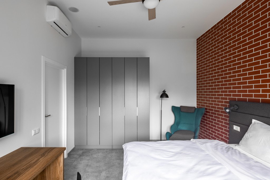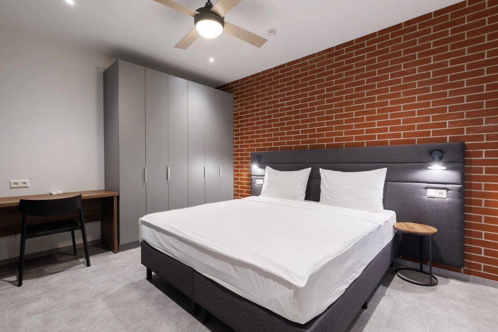 К размещению подготовлены апартаменты с разным уровнем вместимости. Все они оформлены в лаконичном стиле, спокойных тонах. Для проживания гостей каждый номер оборудован мебелью и современной техникой. Ванные комнаты укомплектованы сантехникой и набором полотенец.