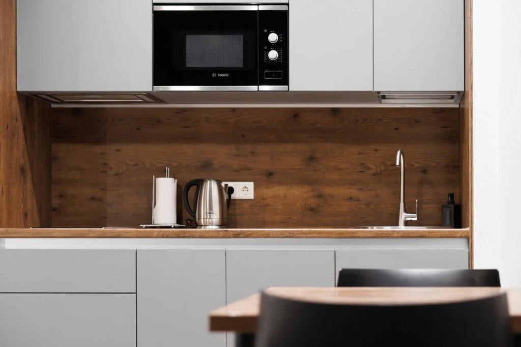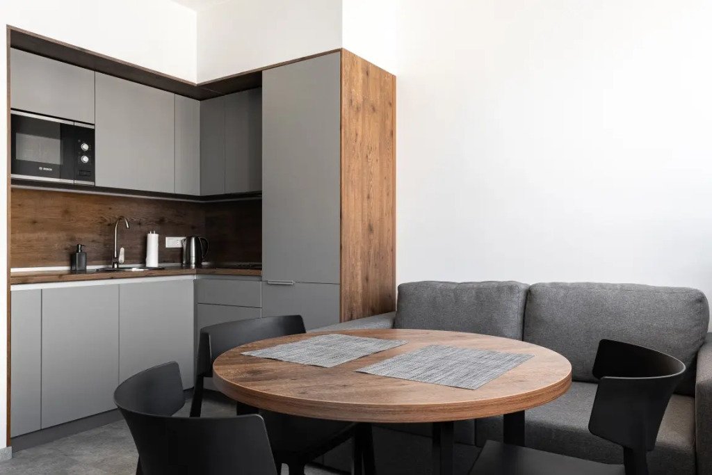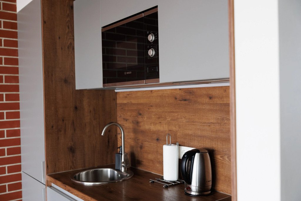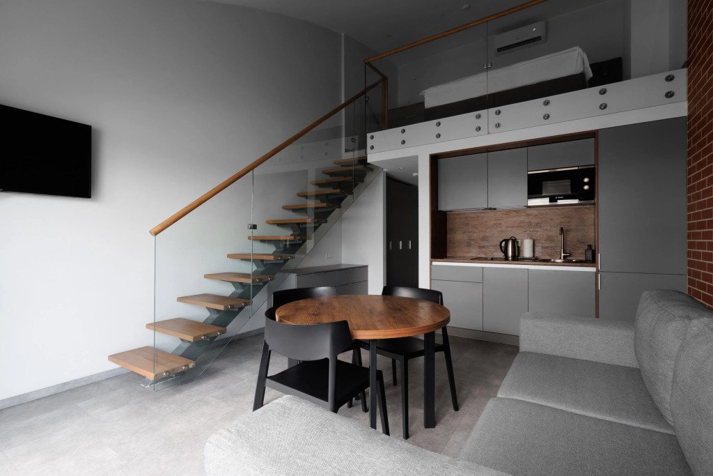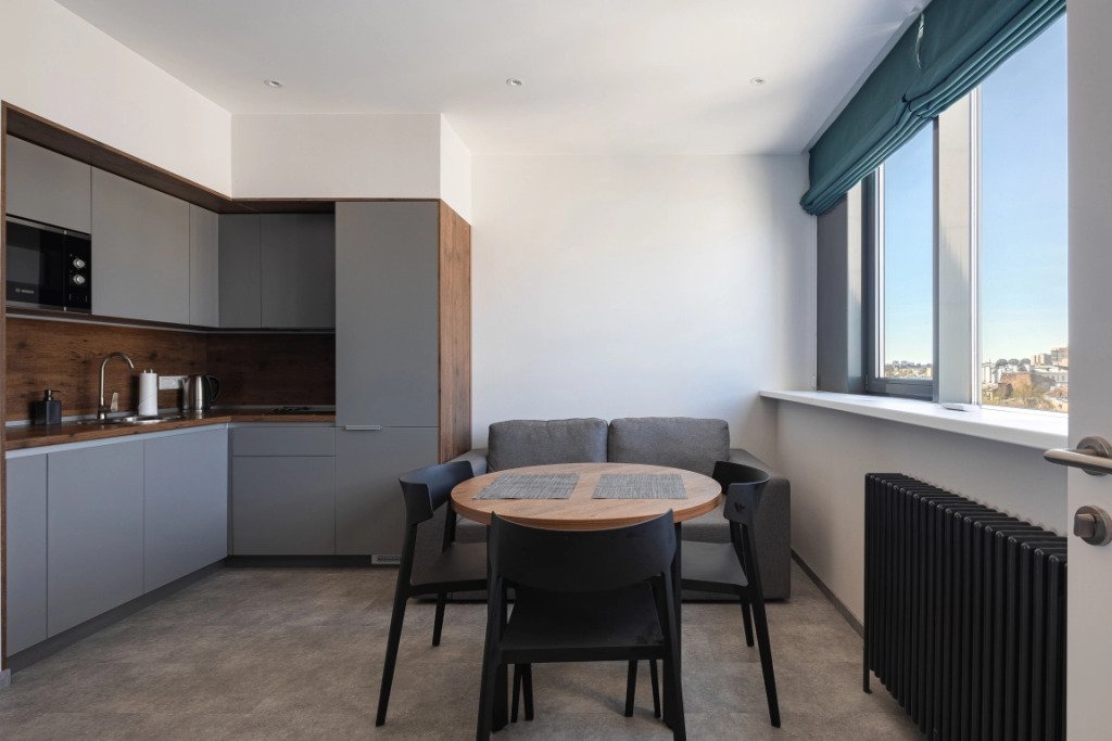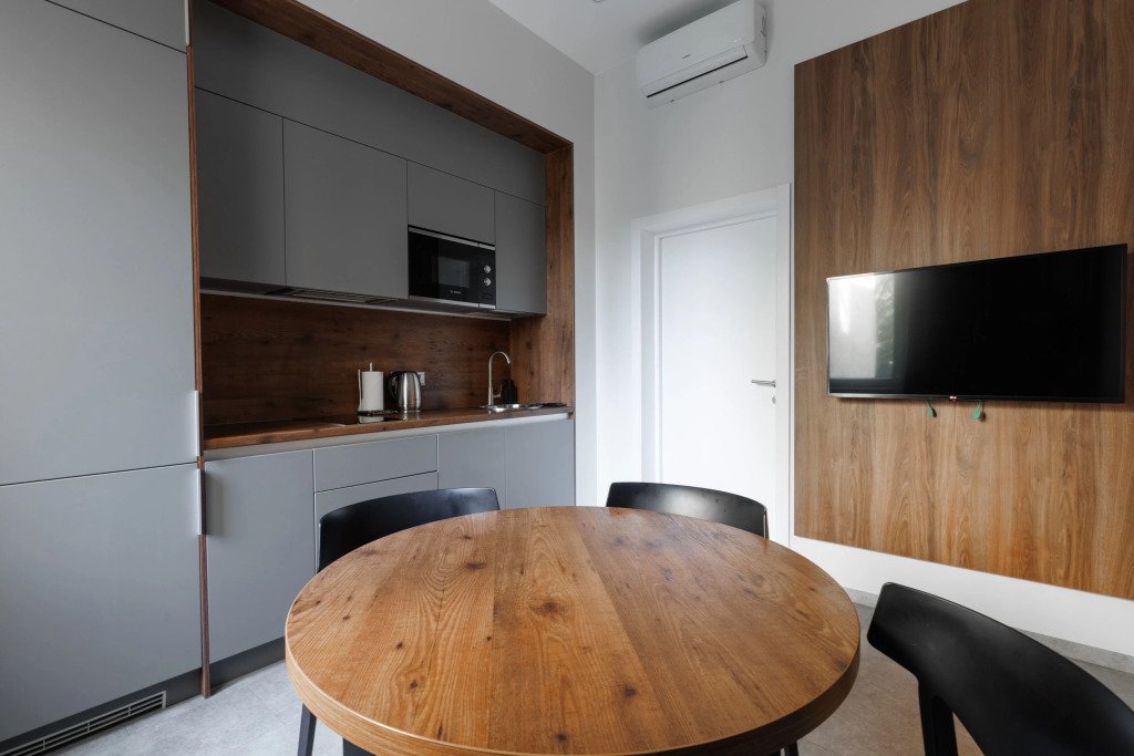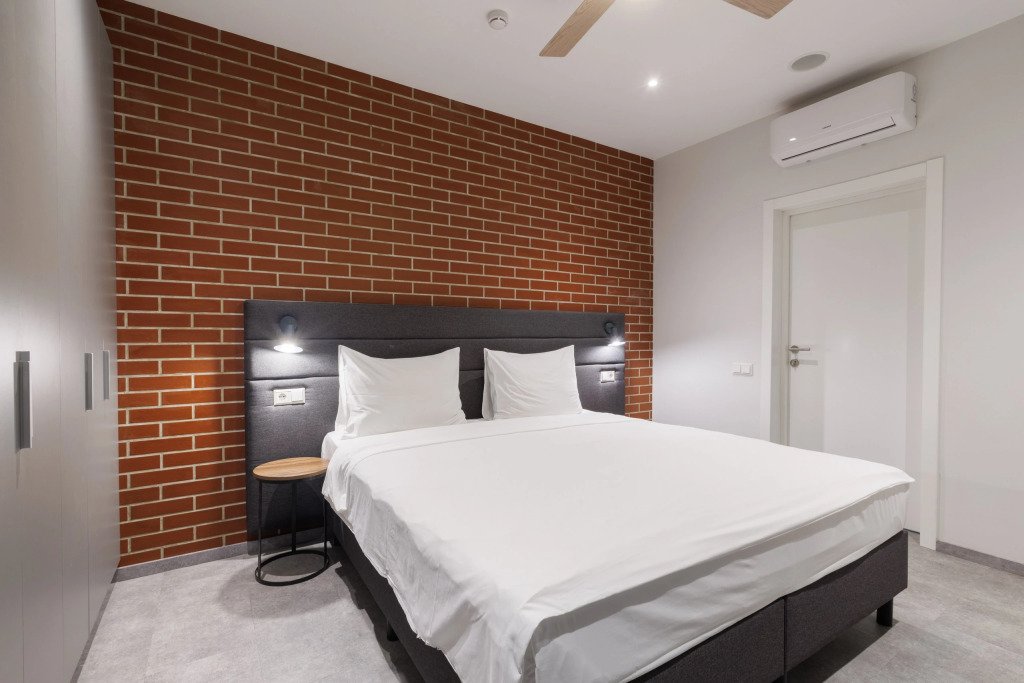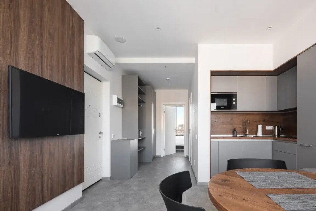 К размещению подготовлены апартаменты с разным уровнем вместимости. Все они оформлены в лаконичном стиле, спокойных тонах. Для проживания гостей каждый номер оборудован мебелью и современной техникой. Ванные комнаты укомплектованы сантехникой и набором полотенец.