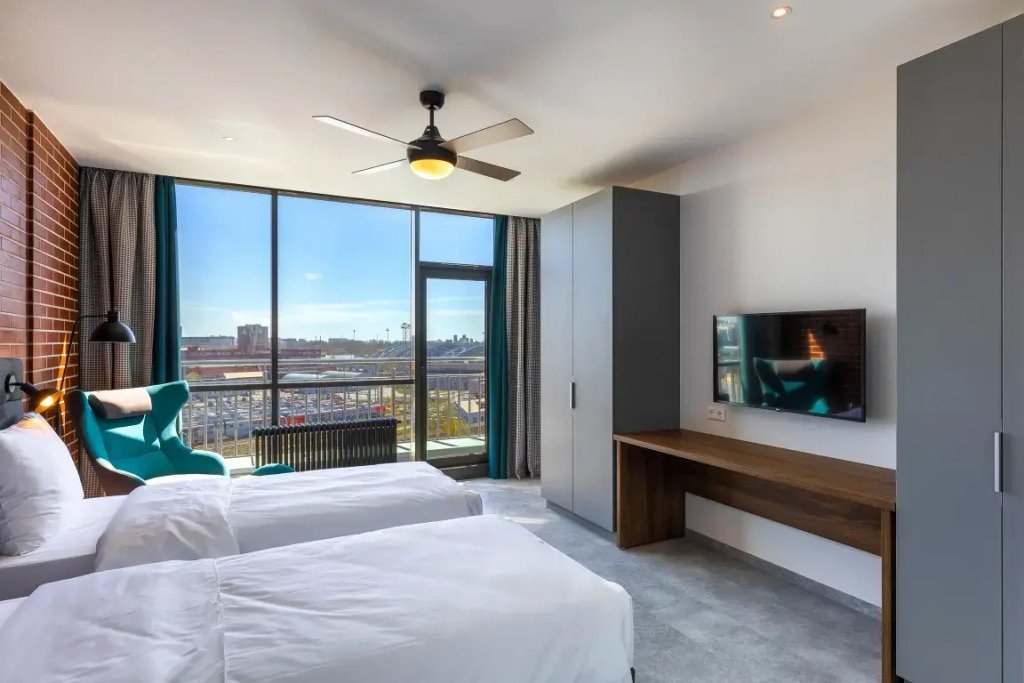 Двухместная студия с балконом и с видом на город 2 отдельные кровати
