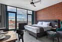 Двухместная студия с балконом и с панорамным видом двуспальная кровать