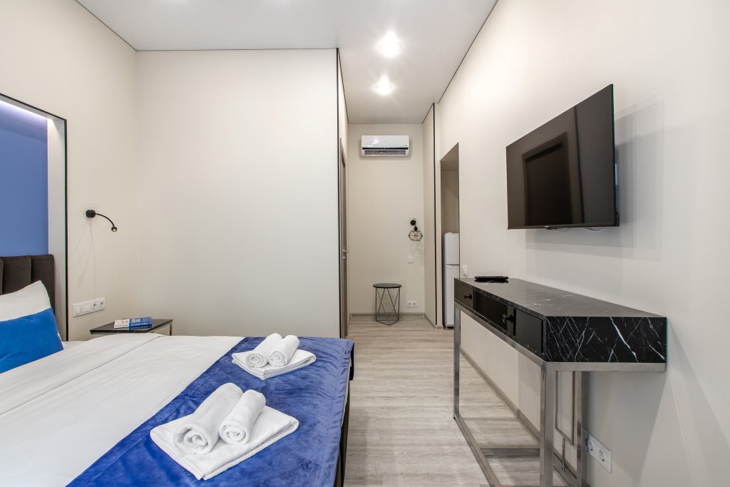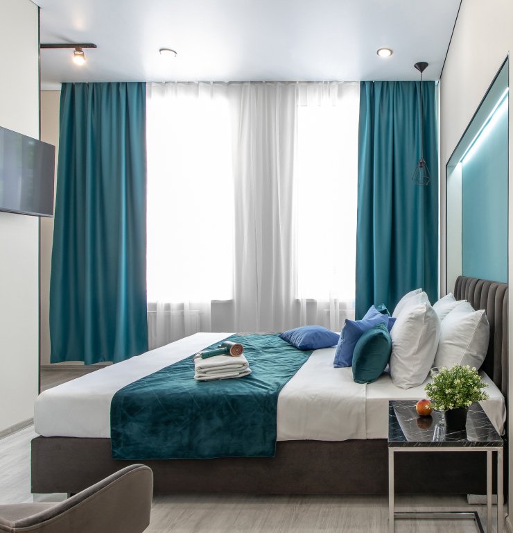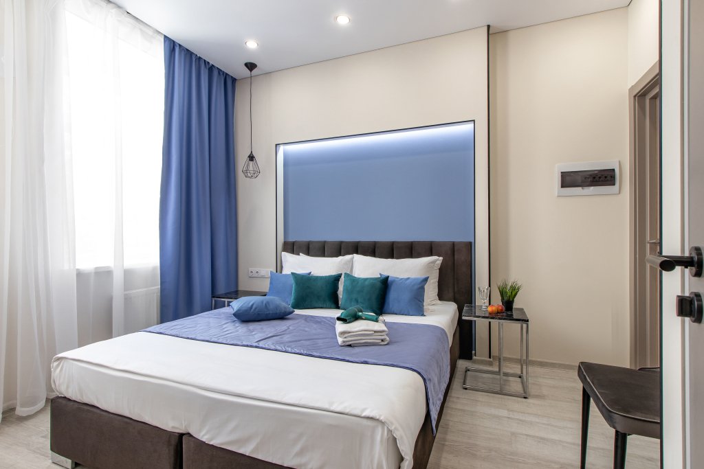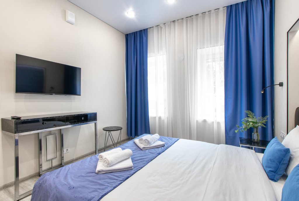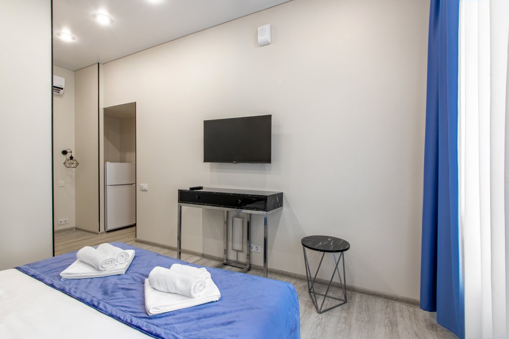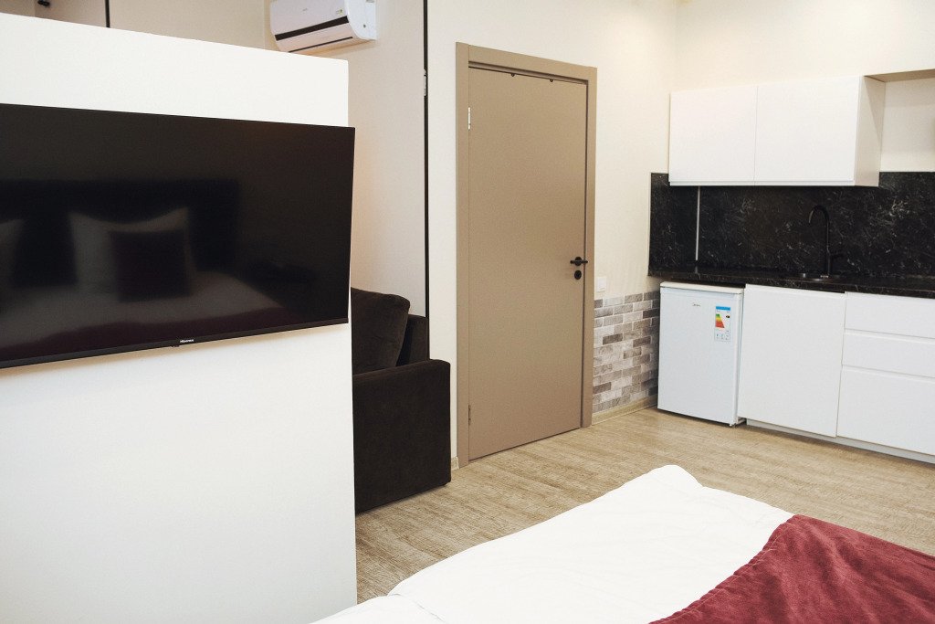 В каждом номере гостей ожидает кондиционер, телевизор, кухня с холодильником, электрической плитой, микроволновой печью и набором посуды. Предоставляются полотенца, постельное белье, халаты, тапочки, гигиенические принадлежности. В номерах также предусмотрен санузел с душевой кабиной и стиральной машиной, а сушилку и гладильные принадлежности по запросу предоставит администратор. Каждый день проводится уборка апартаментов.