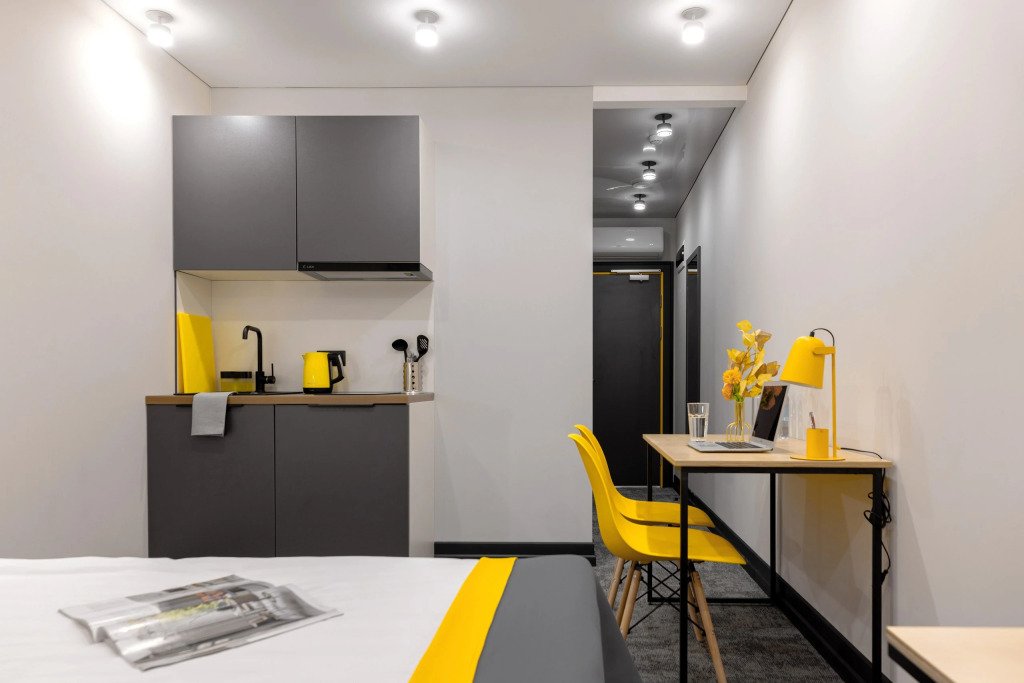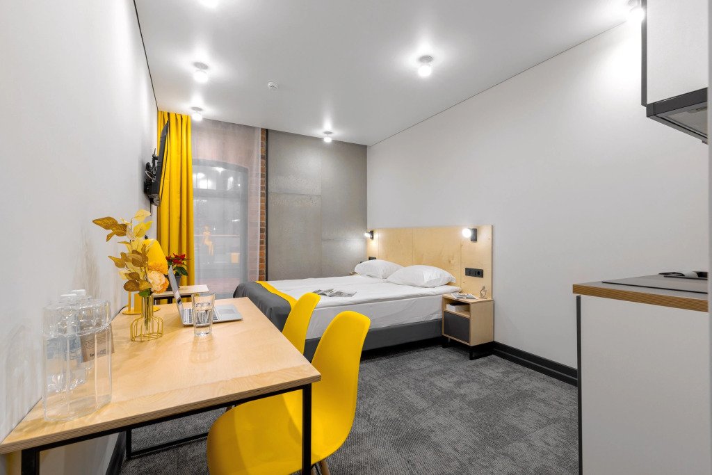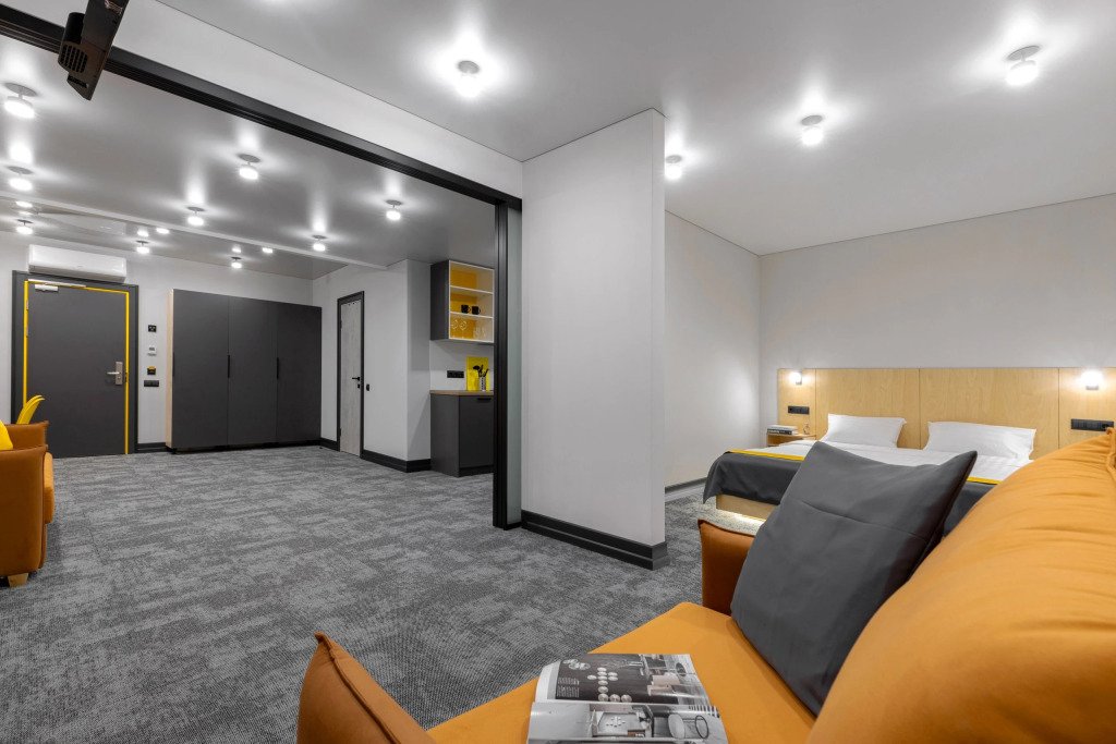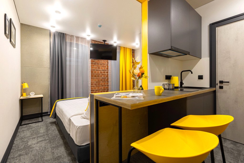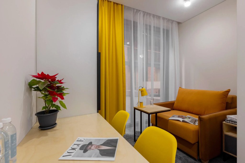 Апарт-отель создаёт пространство для взаимодействия, обмена идеями и творчества, сообщество единомышленников. В лаунж-зоне можно провести бизнес-встречи, посетить арт-зоны комплекса или погрузиться в мир книг в библиотеке.
