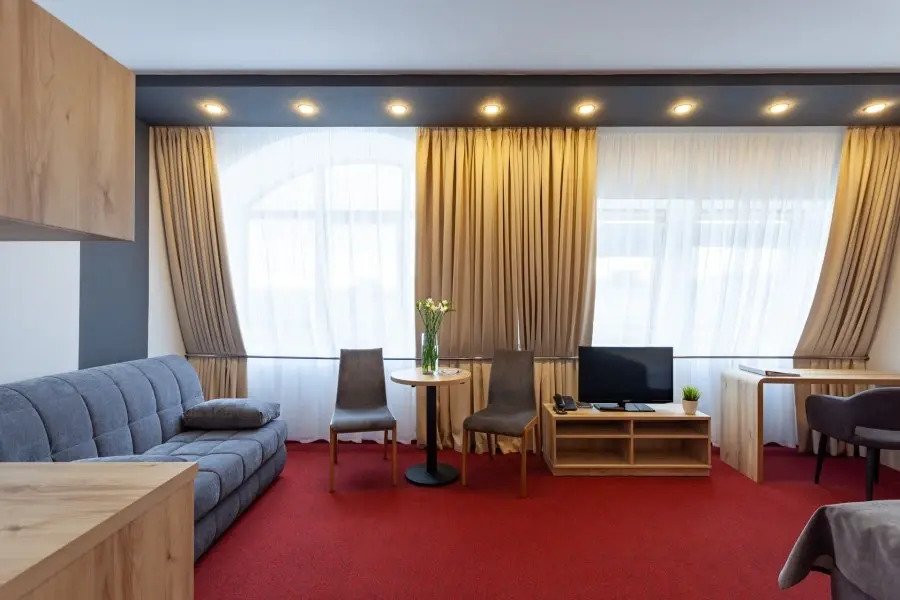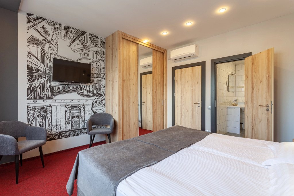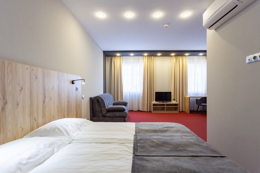 Чтобы вы могли отдохнуть после долгого дня, в номере есть телевизор. Оснащение зависит от выбранной категории номера.