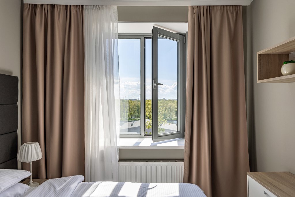 Двухместные апартаменты Дизайн с балконом и с красивым видом из окна двуспальная кровать