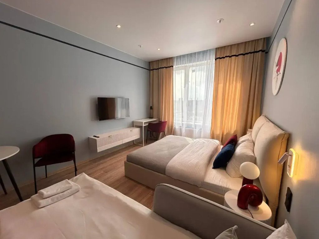 В номере есть телевизор. Оснащение зависит от выбранной категории номера.