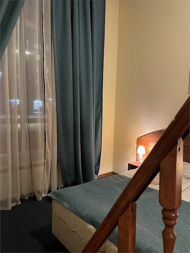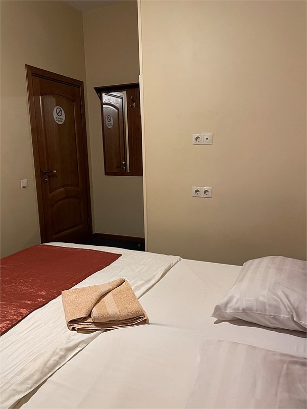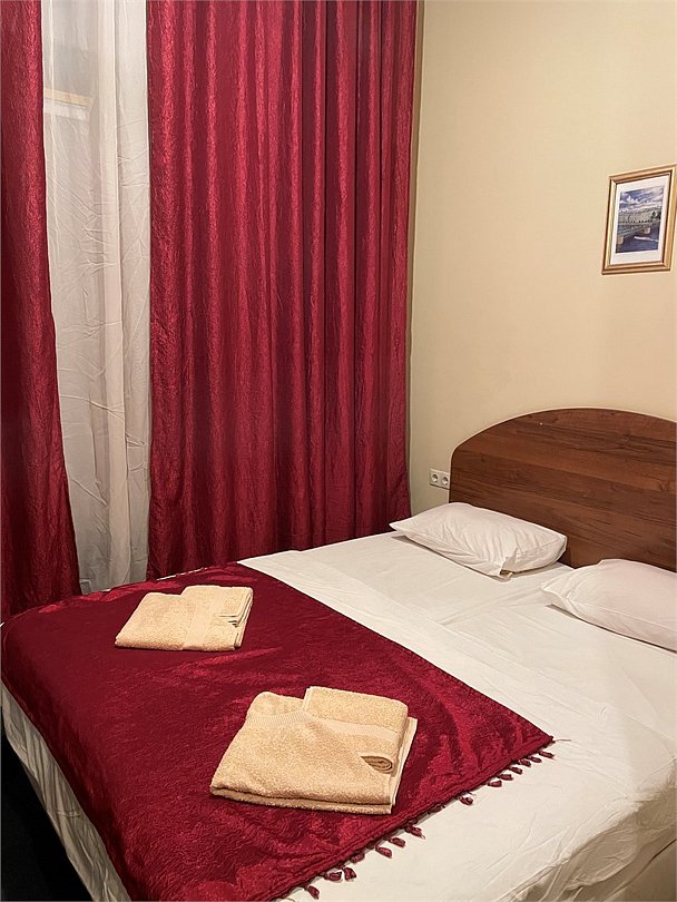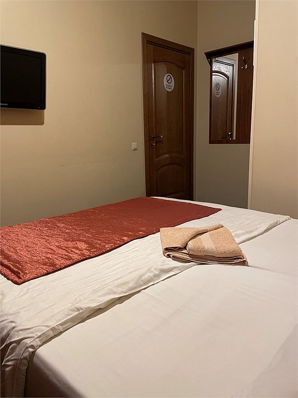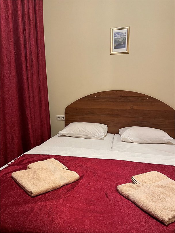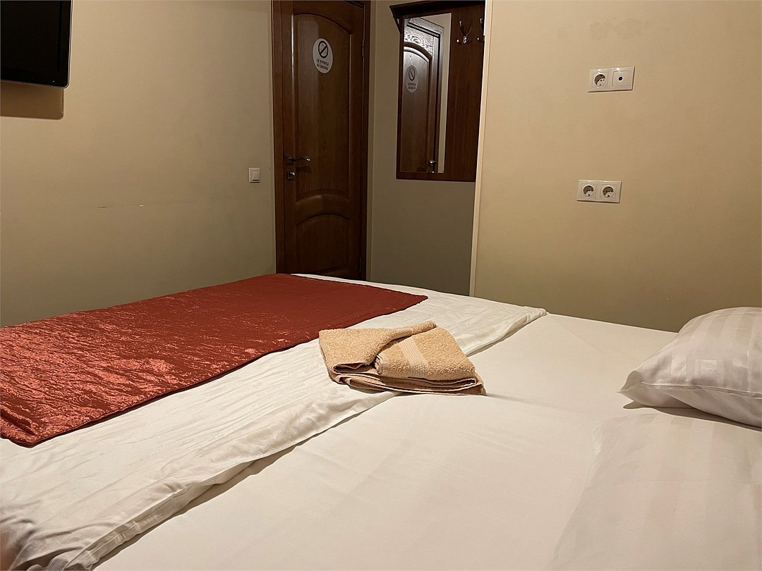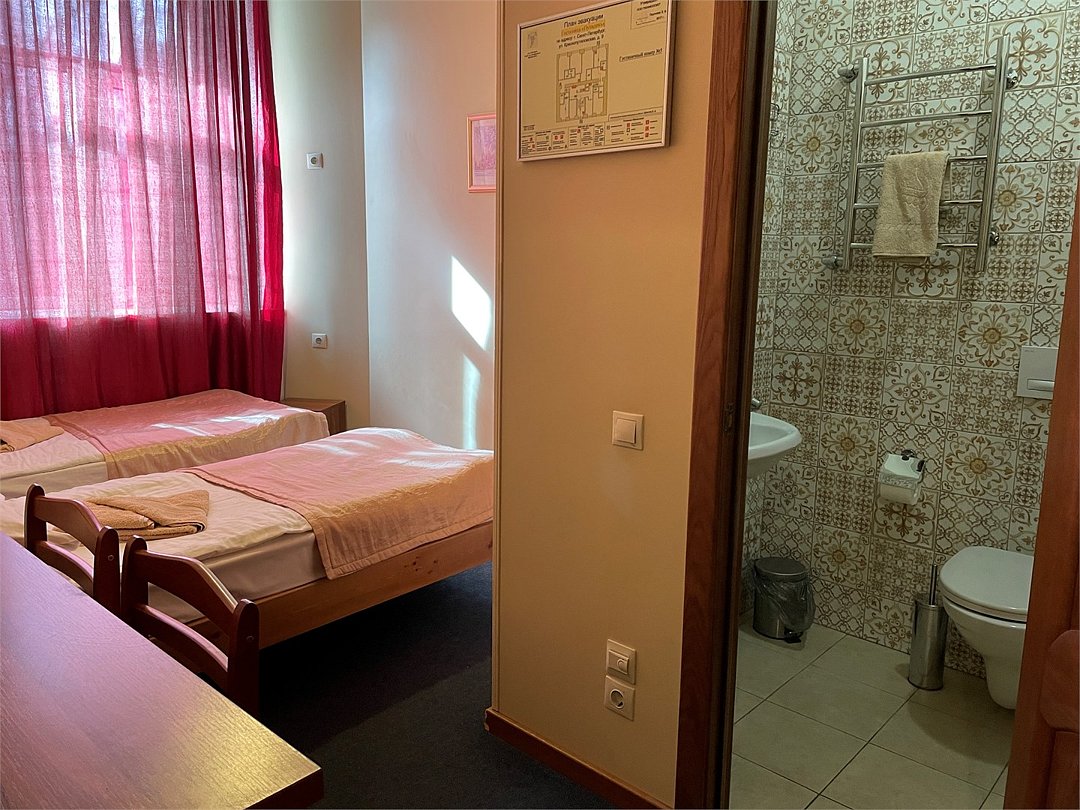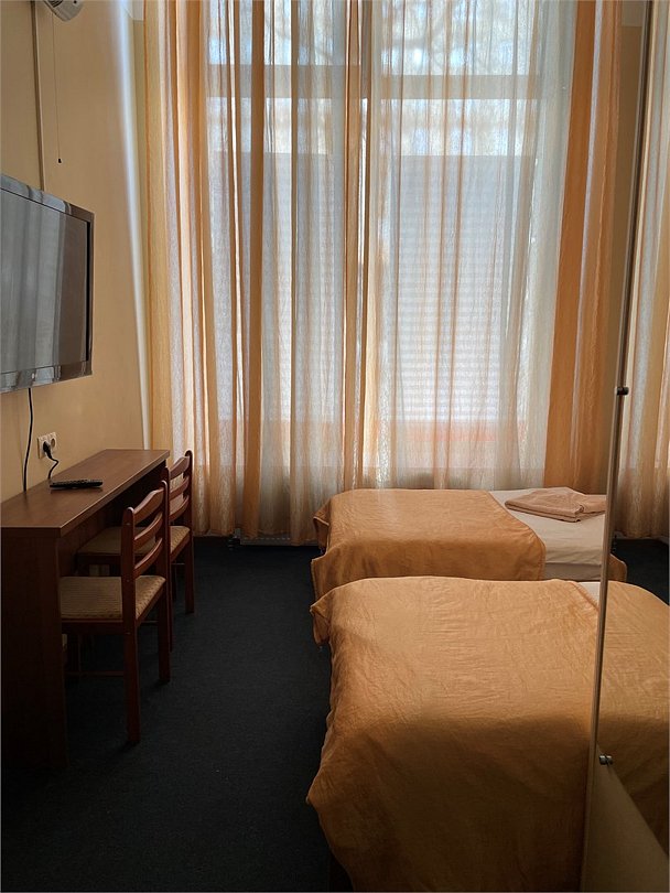 Номер категории Улучшенный Комфорт с одной большой или двумя раздельными кроватями. В номере собственный душ с туалетом. Стол прикроватные тумбочки телевизор. Гостям предоставляются средства личной гигиены, полотенца и тапочки.Услуги и удобства
