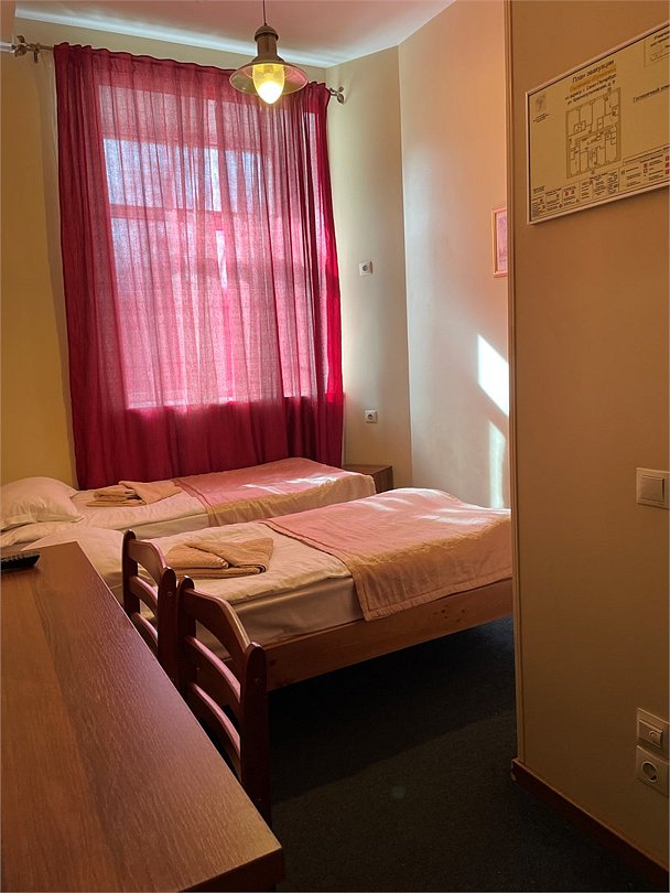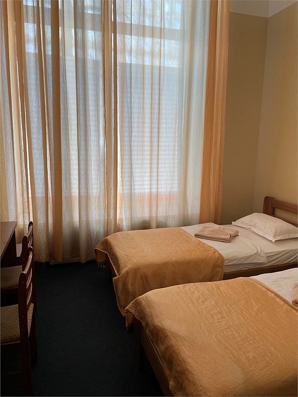 Номер категории Комфорт с одной большой или двумя раздельными кроватями. В номере собственный душ с туалетом. Стол прикроватные тумбочки телевизор. Гостям предоставляются средства личной гигиены, полотенца и тапочки.Услуги и удобства