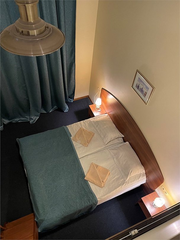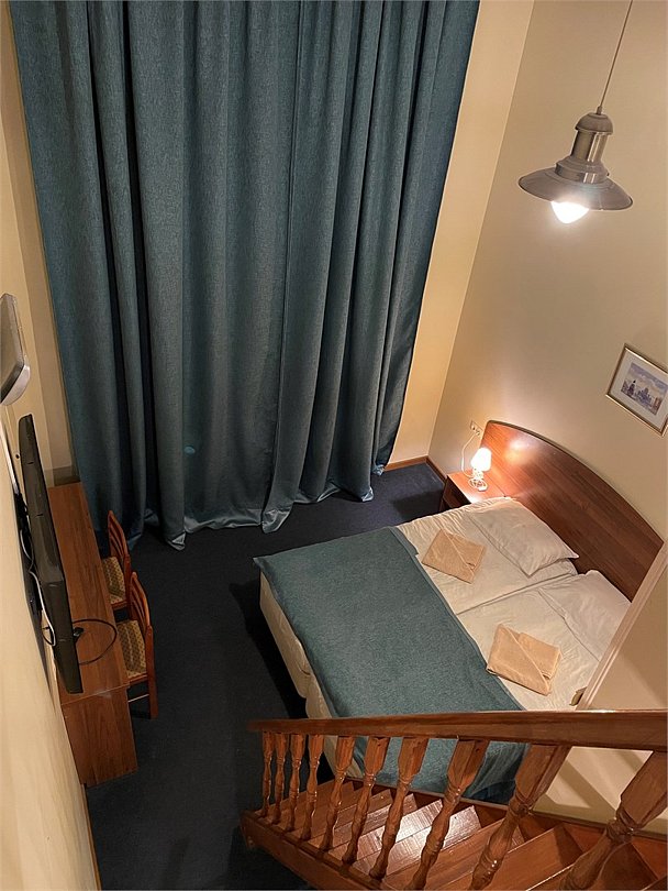 Номер категории Семейный это двух уровневый номер с одной большой и одной односпальной кроватью. В номере собственный душ с туалетом. Стол прикроватные тумбочки телевизор. Гостям предоставляются средства личной гигиены, полотенца и тапочки.Услуги и удобства