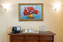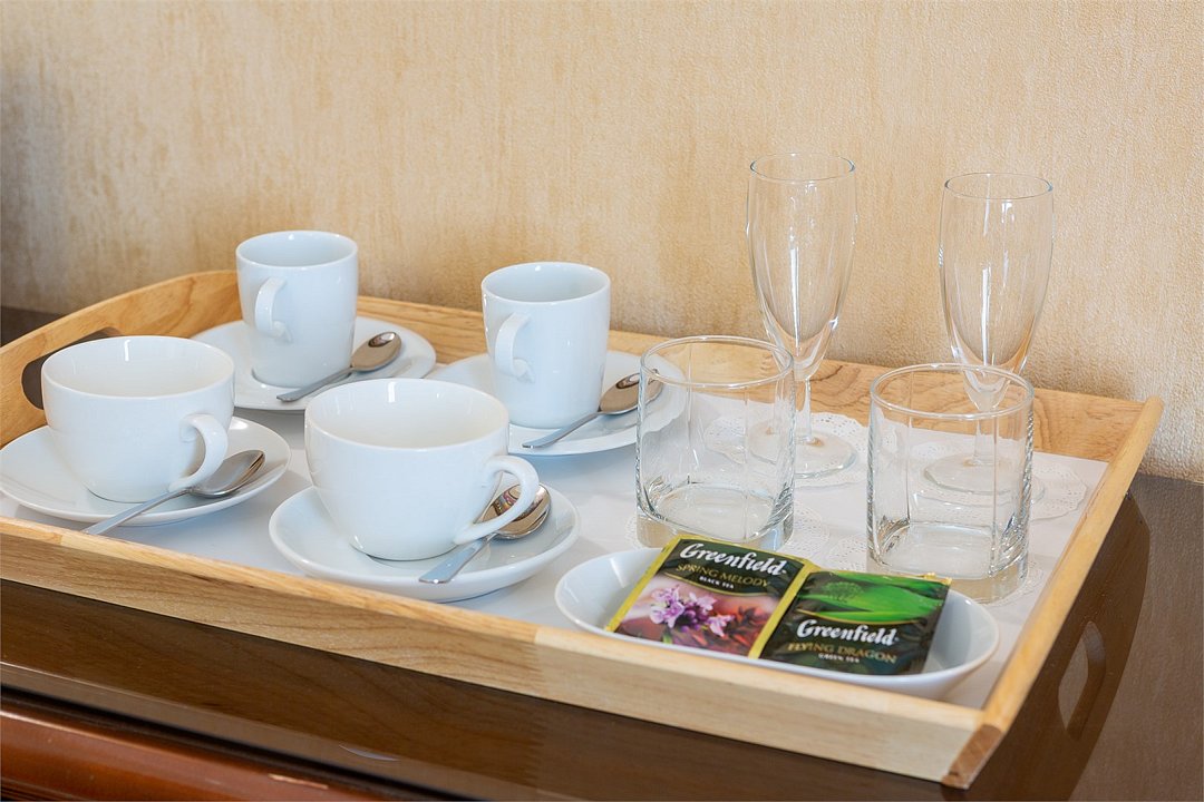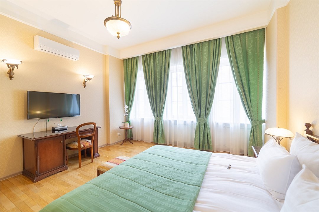 телевизор, Wi-Fi, интернет, телефон, кондиционер, светильник, настольные лампы, фен, кофемашина, утюг, обогреватель, ванная комната, ванна или душевая кабина, санузел, банные принадлежности, халаты, банные полотенца, тапочки, гигиенические средства, косметические средства, кровать «King size», две односпальные или большая двуспальная кровать, гладильная доска, кресла, тумбы, стулья, шкаф для одежды, журнальный столик, письменный стол, багажная тумба, зеркало, мини-бар, письменные принадлежности, чайный набор, обслуживание номеров, информационная карта, меню, сейф, унитаз, раковина, косметическое зеркало, питьевая вода, отопление, вид на город, кулер на этаже, вид во двор, стаканы, кофейный столик, туалетные средства, туалет, цифровое тв, телевизор с плоским экраном, мини-холодильник, гостиничная парфюмерия, можно с питомцамиВ номере