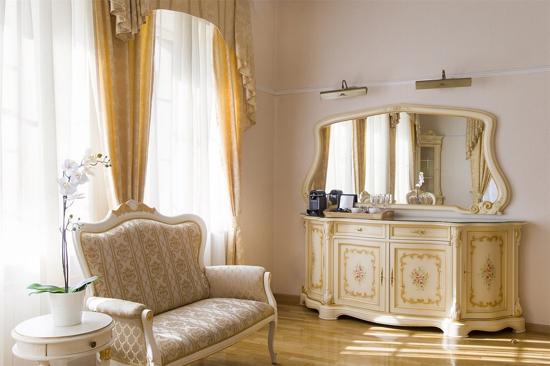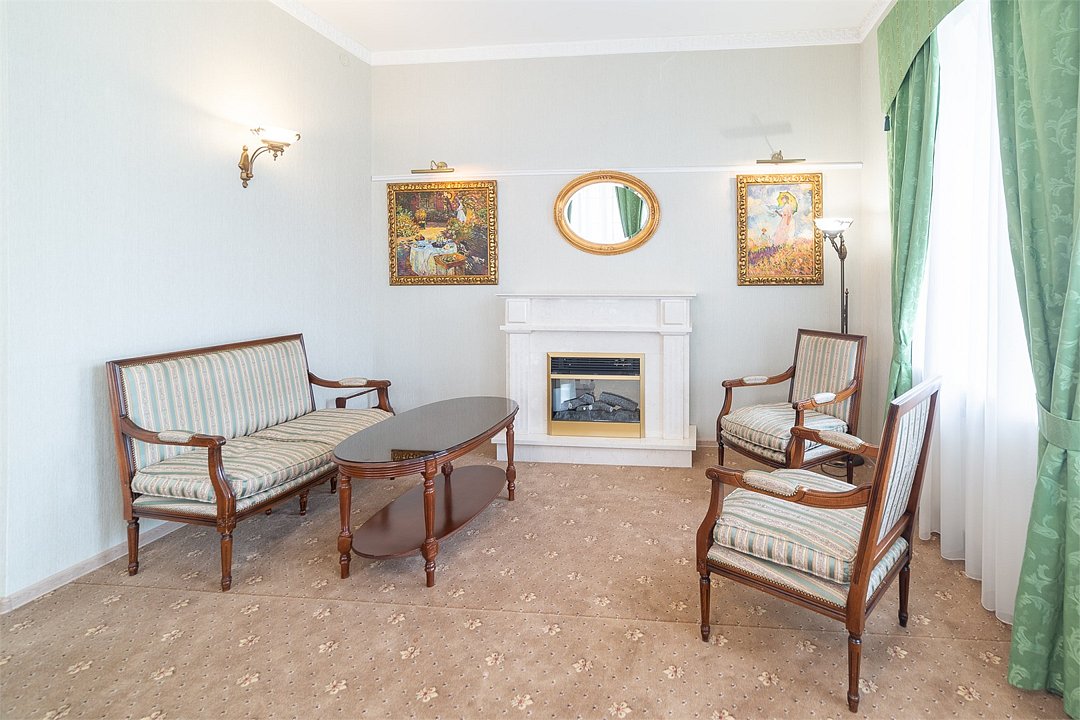 Поистине царская роскошь. Роскошный двухкомнатный номер люкс для самых взыскательных гостей - шикарный интерьер и камин создают незабываемую атмосферу! Номер дополнительно укомплектован кофемашиной, чайной станцией, халатами и расширенным набором косметических принадлежностей.Услуги и удобства