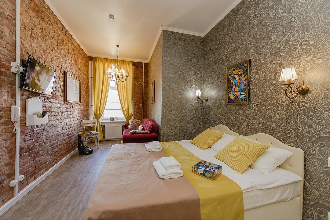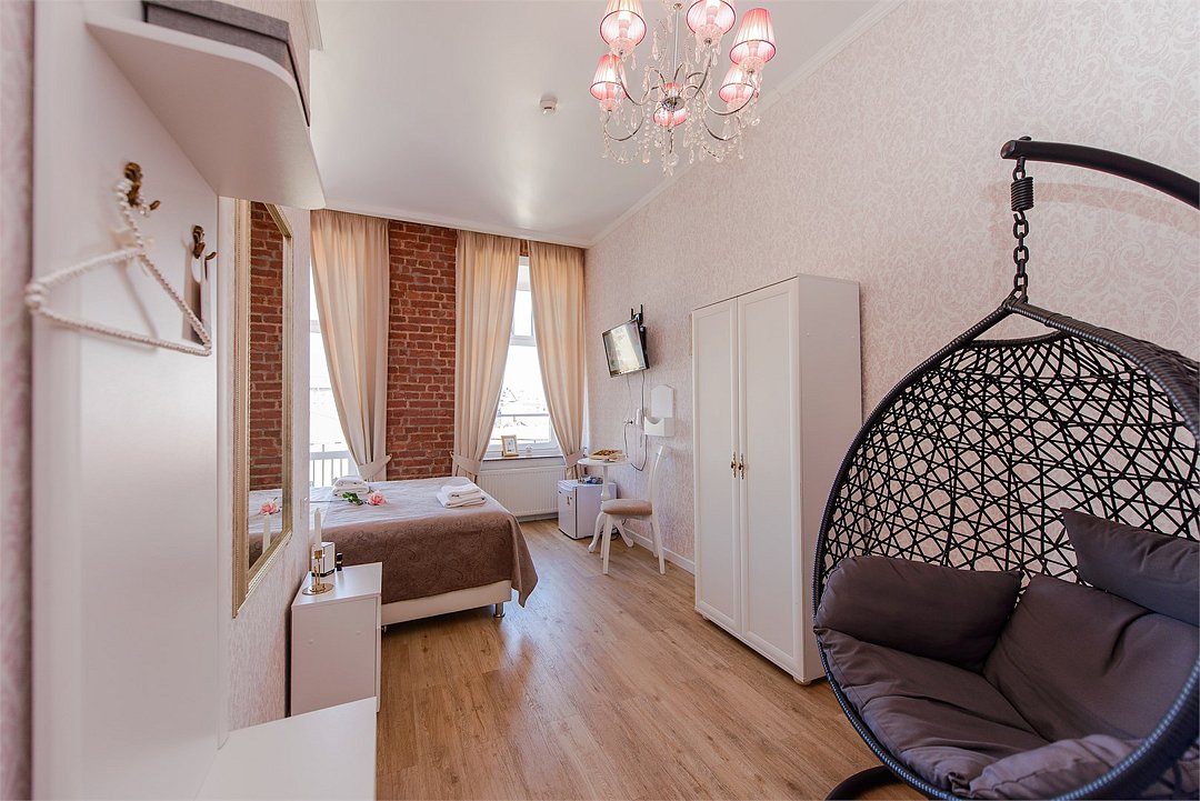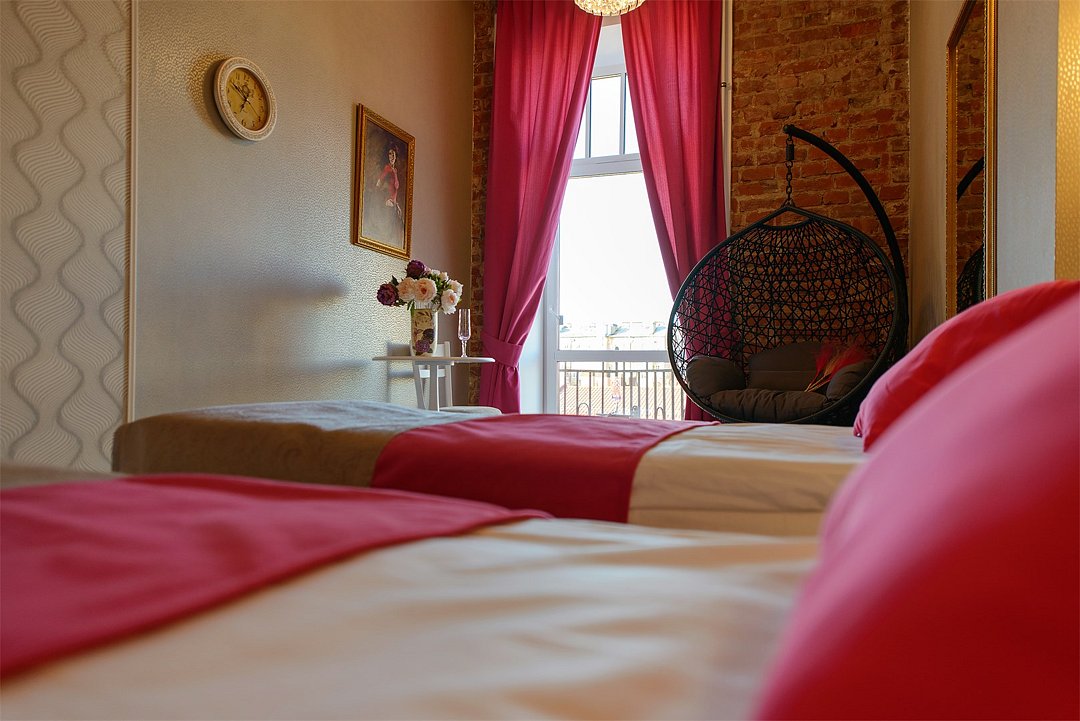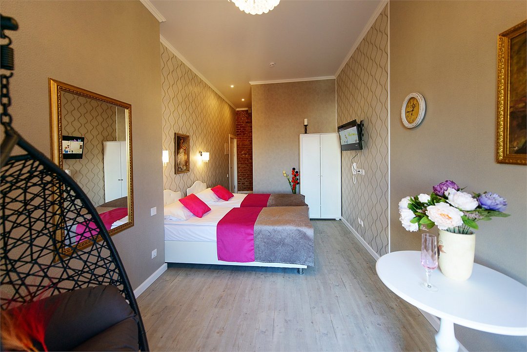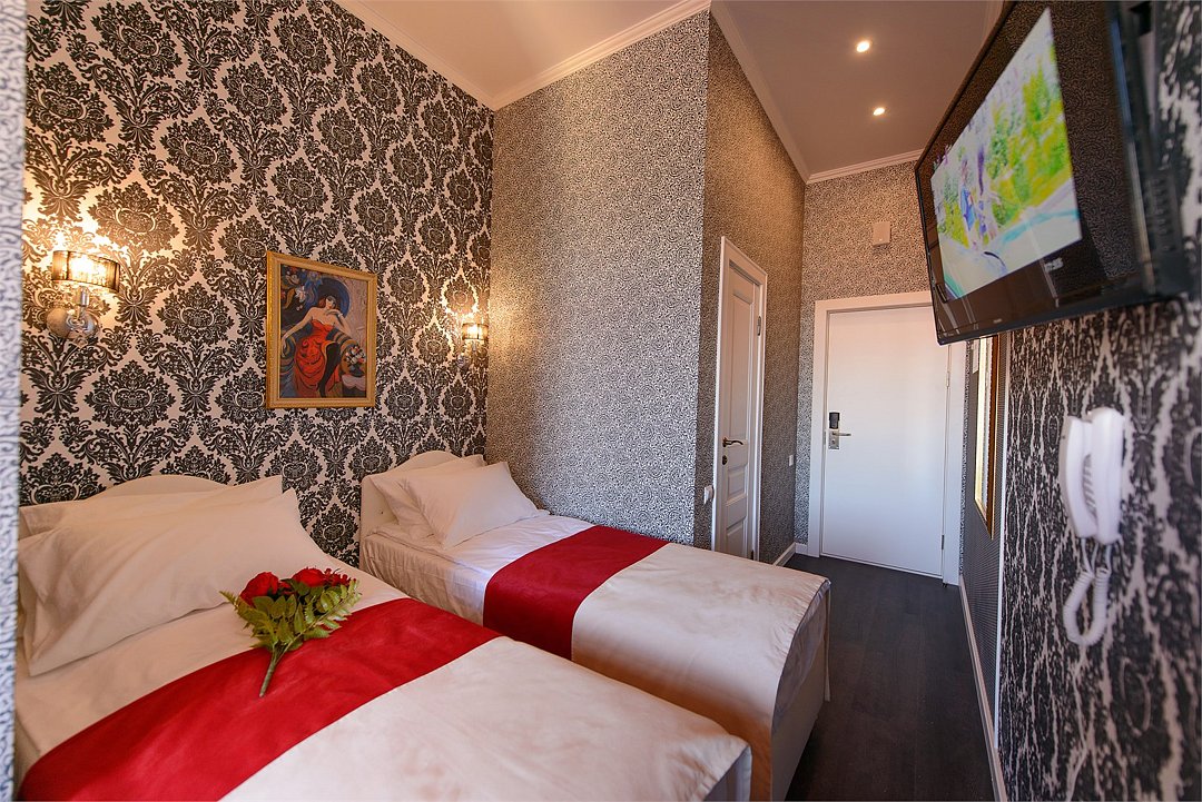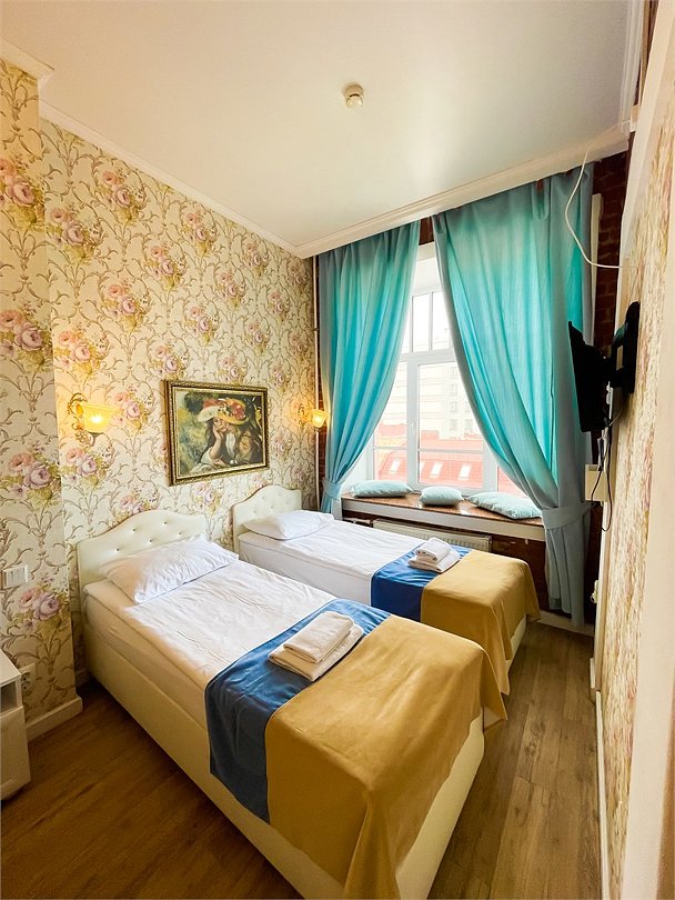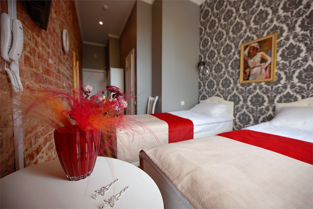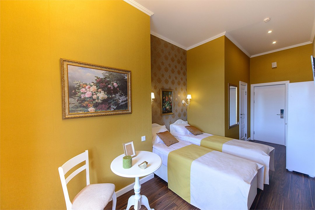 Уютные номера имеют несколько дизайнерских решений, стены украшены репродукциями картин известных художников. Идеальный вариант романтического путешествия. Все номера для некурящих, оснащены сан. узлом с душем, феном и бесплатными туалетными принадлежностями, а также Wi Fi. Во всех комнатах находится телевизор, холодильник, телефон и сейф.Услуги и удобства