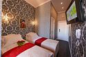 Улучшенные номера имеют несколько дизайнерских решений. Номер подходит для семейного размещения и позволяет добавить дополнительное место для третьего гостя. Удобные кровати позволят отлично отдохнуть после насыщенного дня. Все номера для некурящих, оснащены кондиционером, сан. узлом с душем, феном и бесплатными туалетными принадлежностями. Во всех номерах телевизор, холодильник, телефон и сейф. Обращаем Ваше внимание на то, что при бронировании номера категории "Улучшенный двухместный номер с 1 кроватью или 2 отдельными кроватями" кресло "кокон" предоставляется при наличии возможности на момент Вашего заезда.Услуги и удобства