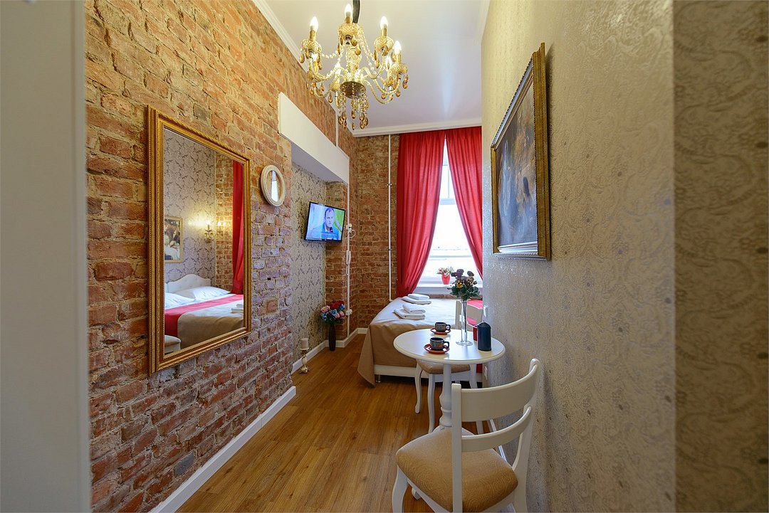 К минусам могу отнести расположение , до главных достопримечательностей далеко конечно , и до остановки транспорта тоже не близко . Но поэтому и цена ниже , чем в центральном районе. А так рядом есть пара кафе , кофейня , магазины. -