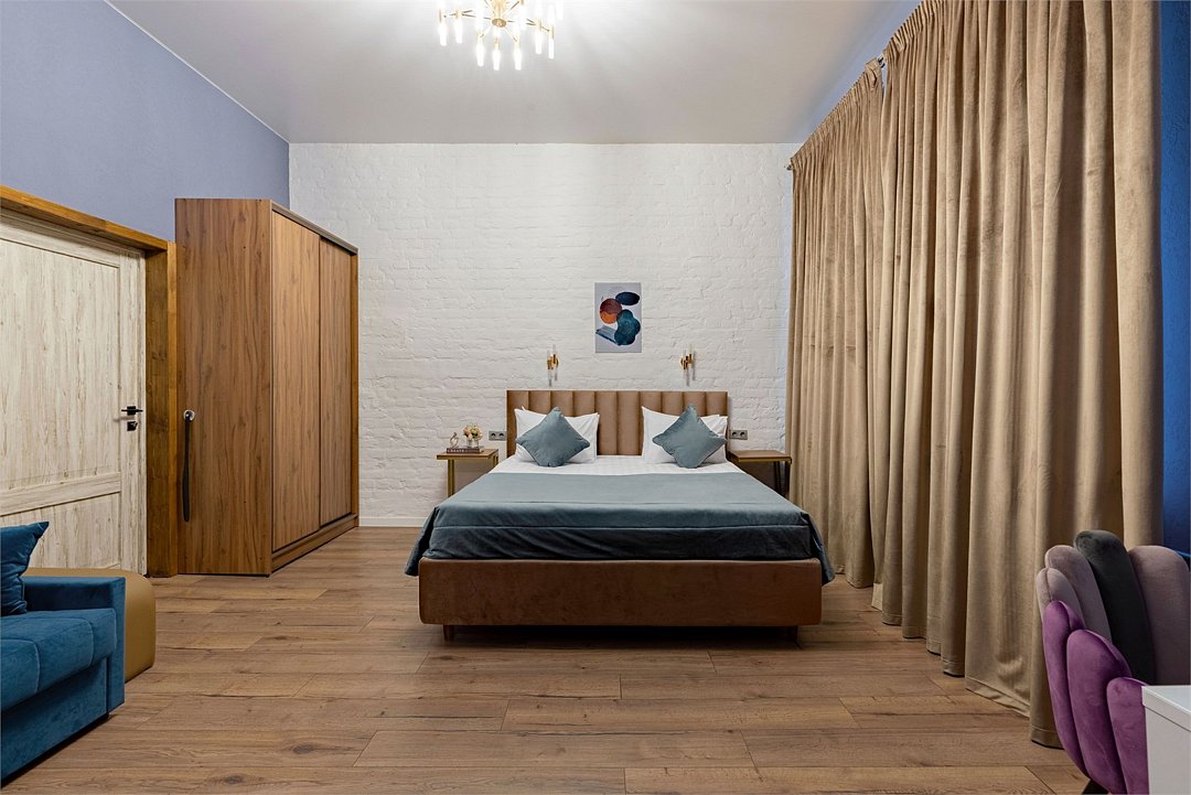 Wi-Fi, интернет, холодильник, фен, электронные замки, плита для приготовления пищи, микроволновая печь, утюг, душевая кабина, санузел, банные полотенца, кровать «King size», гладильная доска, ортопедический матрас, диван, стулья, вешалки, обеденный стол, зеркало, кухня, набор посуды, стиральная машина, чайник, мягкая мебель, косметическое зеркало, обеденная зона, отопление, душ, вид во двор, высокие потолки, кухонная утварь, столовые приборы, стол, туалетные средства, диван-кровать, раскладной диван, телевизор с плоским экраном, москитная сетка, телевизор со Smart TV, холодильный шкаф, онлайн-регистрация до заезда, двуспальный раскладной диван-кровать, межкомнатная дверь, вешалки-плечики, мыло, затемняющая штора, зеркало в полный рост, онлайн-регистрация, можно с питомцамиВ апартаментах