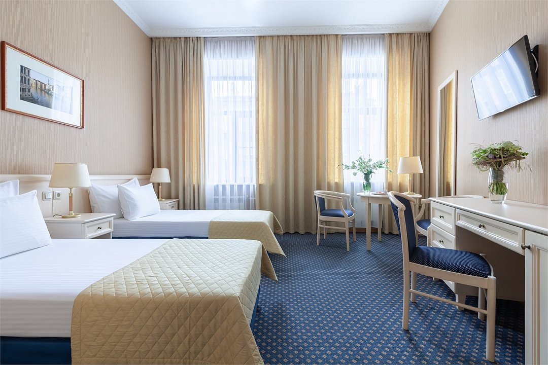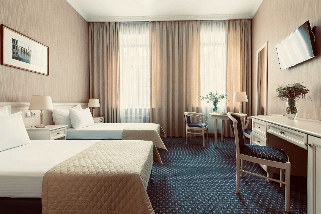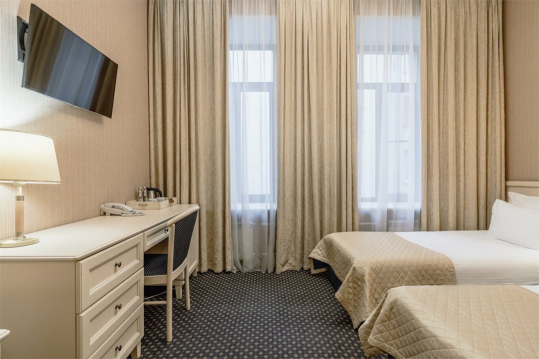 Размещение 1-3 человек (дополнительное спальное место под запрос за дополнительную плату) Двуспальная или две односпальные кровати Площадь номера — 24 м2 Светлые просторные номера с классическими высокими потолками и дополнительной зоной отдыха. Из окон номеров данной категории открывается вид на городской пейзаж Владимирского проспекта с прекрасной архитектурой эпохи царской России. Воспользуйтесь специальным предложением – «меню подушек» и подберите наиболее подходящий вариант для максимально комфортного отдыха. Для всех гостей отеля предусмотрена скидка 20% по будням дням с 12:00 до 16:00 на основное меню ресторана Villa AstonУслуги и удобства