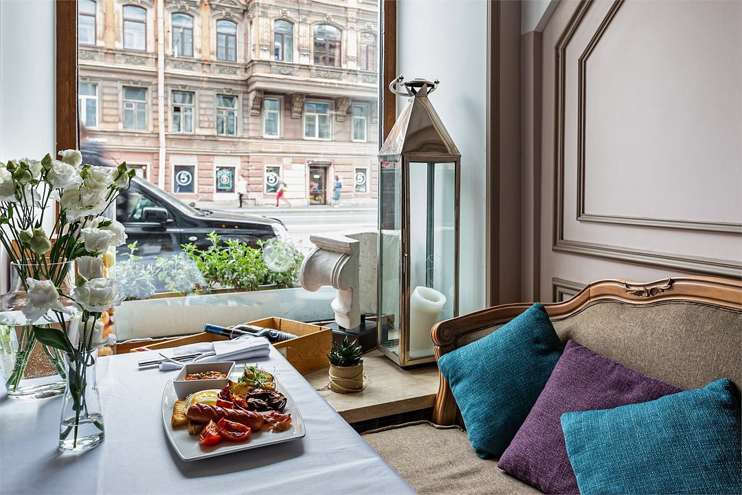 Размещение 1-3 человек (дополнительное спальное место под запрос за дополнительную плату) Двуспальная кровать Площадь номера — 24 м2 Светлые просторные номера с классическими высокими потолками и дополнительной зоной отдыха. Из окон номеров данной категории открывается вид на городской пейзаж Владимирского проспекта с прекрасной архитектурой эпохи имперской России. Воспользуйтесь специальным предложением – «меню подушек» и подберите наиболее подходящий вариант для максимально комфортного отдыха. Для всех гостей отеля предусмотрена скидка 20% по будням дням с 12:00 до 16:00 на основное меню ресторана Villa AstonУслуги и удобства
