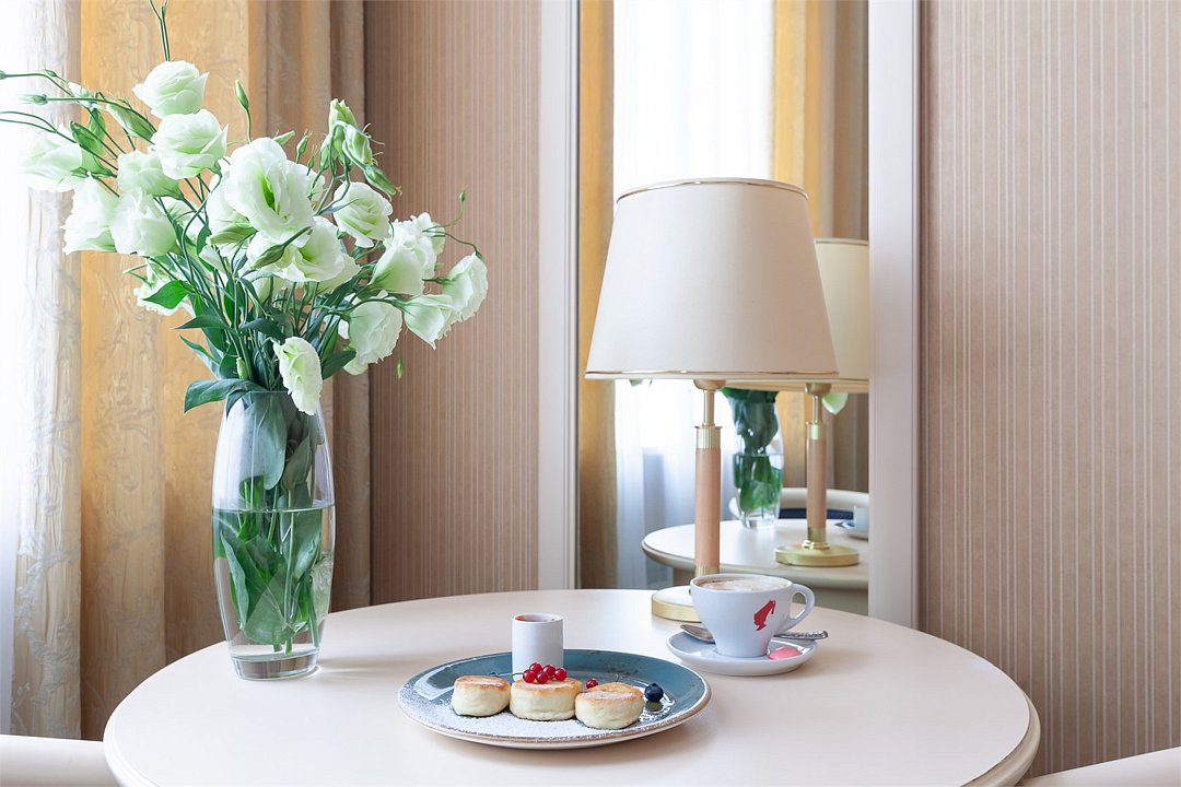 Размещение 1-4 человек (дополнительное спальное место под запрос за дополнительную плату) Двуспальная кровать и диван Площадь номера — 36 м2 Уютный и большой номер с окнами-витражами, выходящими на тихий внутренний двор. Увеличенная площадь ванной комнаты и расширенный набор косметических принадлежностей обеспечит максимальный комфорт. Гостевая зона с персональной кофе машиной и уютным диваном, который по необходимости раскладывается, как два дополнительных места. Воспользуйтесь специальным предложением – «меню подушек» и подберите наиболее подходящий вариант для максимально комфортного отдыха. Для всех гостей отеля предусмотрена скидка 20% по будням дням с 12:00 до 16:00 на основное меню ресторана Villa AstonУслуги и удобства