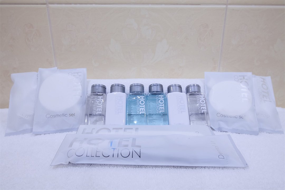 - набор косметики, комплект белоснежных махровых полотенец, тапочки и халат