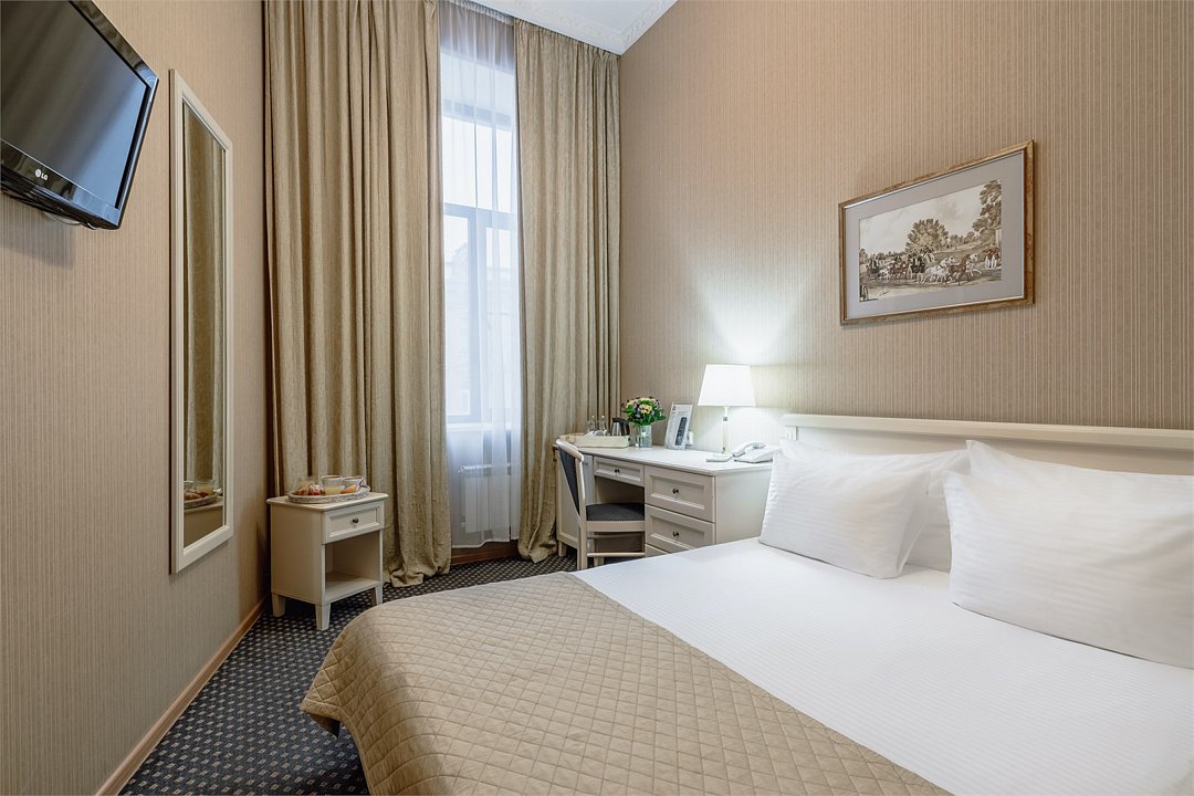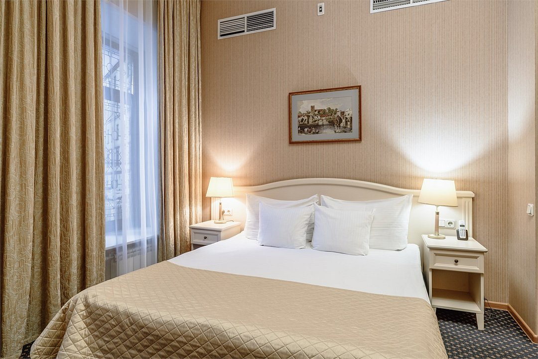 Размещение 1-2 человек Двуспальная или две односпальные кровати Площадь номера — 17 м2 Светлые и уютные номера данной категории подойдут как для деловых гостей, так и для путешественников. Окна номера выходят на спокойный внутренний двор. Воспользуйтесь специальным предложением – «меню подушек» и подберите наиболее подходящий вариант для максимально комфортного отдыха. Для всех гостей отеля предусмотрена скидка 20% по будням дням с 12:00 до 16:00 на основное меню ресторана Villa AstonУслуги и удобства