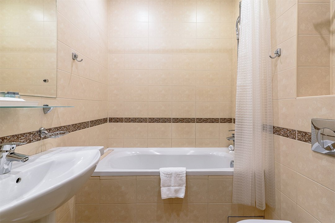 кабельное телевидение, Wi-Fi, телефон, кондиционер, светильник, настольные лампы, фен, электронные замки, утюг, ванная комната, ванна, банные принадлежности, халаты, банные полотенца, тапочки, гладильная доска, тумбы, стулья, шкаф для одежды, вешалки, письменный стол, зеркало, мини-бар, письменные принадлежности, чайный набор, обслуживание номеров, информационная карта, меню, сейф, чайник, унитаз, раковина, питьевая вода, ковровое покрытие, отопление, душ, вид во двор, меню подушек, стаканы, телевизор с плоским экраном, без питомцевВ номере
