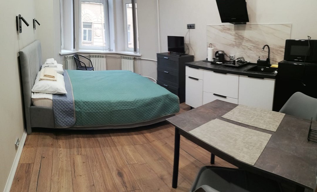 22 кв. м Максимум 2 гостя Одна двуспальная кровать Оборудованная кухня (плитка, холодильник, вытяжка, набор посуды, СВЧ, чайник) Собственный с/у с душем TV, WIFI Апартаменты находятся в соседней парадной, на 5 этажеУслуги и удобства
