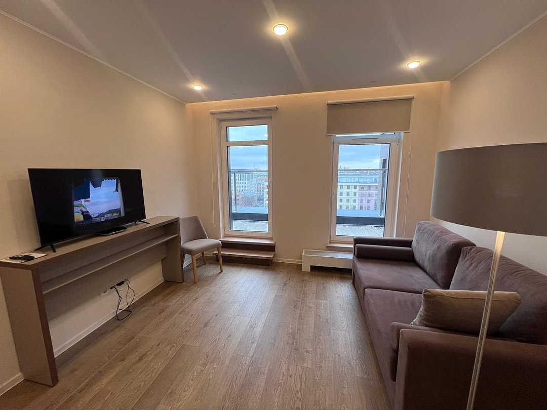 два телевизора, Wi-Fi, холодильник, кондиционер, светильник, фен, электронные замки, плита для приготовления пищи, микроволновая печь, утюг, ванная комната, ванна, банные принадлежности, банные полотенца, тапочки, гигиенические средства, косметические средства, двуспальная кровать, две односпальные кровати, гладильная доска, ортопедический матрас, тумбы, стулья, шкаф для одежды, вешалки, письменный стол, обеденный стол, зеркало, мебельный гарнитур, две комнаты, кухня, набор посуды, обслуживание номеров, сейф, посудомоечная машина, стиральная машина, чайник, унитаз, раковина, мягкая мебель, косметическое зеркало, обеденная зона, гостиная зона, отопление, вид на город, ламинат, кухонная посуда, стаканы, кухонная утварь, столовые приборы, туалетные средства, туалет, сушилка для белья, диван-кровать, раскладной диван, телевизор со Smart TV, номер для некурящих, пуфик, морозильная камера, можно с питомцамиВ апартаментах