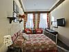Люкс 2-х этажный с джакузи для некурящих, с сан. узлом, феном, халатами, бесплатными туалетными принадлежностями и Wi-Fi. Во всех комнатах есть телевизор, сейф, холодильник, кондиционер, мебельный гарнитур, а также письменный стол. На 1 - уровне расположена гостиная, 2 односпальных кровати, которые при необходимости сдвигаются и делается 1 большая кровать, туалет. На 2-м уровне расположена спальня с кроватью queen size (160*200) и ванная комната с джакузи.