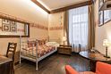 Семейный 2-х этажный полулюкс для некурящих, с сан. узлом, душем или ванной, феном, бесплатными туалетными принадлежностями и Wi-Fi. Во всех комнатах есть телевизор, сейф, холодильник, кондиционер, мебельный гарнитур, а также письменный стол. На 1 - уровне расположена гостиная, 2 односпальных кровати, которые при необходимости сдвигаются и делается 1 большая кровать, туалет. На 2-м уровне расположена спальня с кроватью queen size (160*200) и ванная комната (совмещенный санузел с душем или ванной).