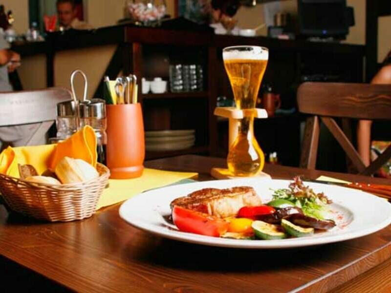 По утрам гостей приглашают за шведский стол. Помимо того в гостинице работает еще 3 ресторана, подающие блюда немецкой, итальянской и русской кухни. Круглосуточно открыт лобби-бар. На самом высоком этаже также открыт бар с панорамным видом на город. По телефону еду можно заказывать в номер.