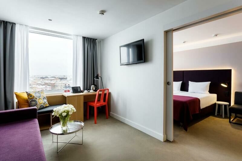Путешествие с семьейРекомендуюНачну отзыв с того, что в Санкт Петербург мы приехали на машине. Заезд удобный, с разных сторон. Имеется большая парковка, платная. Но я скажу за сутки 500 руб. Это не дорого. Хочу отметить, что отель очень большой. Не помню сколько этажей, но мы жили на 15, у нас было два номера. При регистрации на стойке учли наши пожелания и дали на одном этаже. Номера маленькие, но лично мне это достаточно, так как я не сижу в номере, а мне нужно только поспать. И могу сказать, я выспалась и спала, как младенец, что для меня редкость на новом месте. А это говорит о том, что матрас и подушки очень удобные. В номере есть всё не обходимое или если надо по просьбе принесут. Вид из окна шикарный, на набережную реки Фонтанки, жаль, что не было балконов и окна сильно не откроешь. Хотя и правильно, по техники безопасности. Питание шведский стол, все вкусно, разнообразно, много, неограничено. Официанты молодцы, не успевало, что то закончится , тут же уже стоит полное. Столы быстро убирали. На завтрак мы пришли в 09:00, очереди не было, свободные столики были. И при этом всё было. Поэтому могу точно сказать, обслуживание хорошее, сервис обслуживания на достойном уровне. Персонал вежливый, приветливый и отзывчивый. Отель чистый, ухоженный. Что очень важно - в номере тихо и не слышно соседей. Хотя соседи были, я точно знаю))) В баре прекрасные коктейли, хотя выбор, не очень большой. Так же спасибо, что у отеля есть место для курения. Хотя я бы поставила там, столики вечером. Много выходят с бокалами коктейлей, покурить или просто пообщаться на свежий воздух. От отеля, недалеко до общественного транспорта, до остановок, до метро. До центра рукой подать. Единственное, моё пожелание, повесить ложку для обуви в коридоре, а не в шкафу у кровати. Так как перед выходом, я не обнаружила ложки, чтобы обуть кроссовки. Подумала, страно, наверное забыли доложить. И только когда легла спать, обнаружила, что она лежит в шкафу на полке. И минус, что у лифта одна кнопка не важно куда ты вызываешь вверх или вниз. Так как лифтов 7 шт. Не которые индивидуумы нажимают на все, а ты потом на всех этажах останавливаешься, а там ни кого. Из за этого долго либо спускается, либо поднимаешься, а это минус, что ты на самом высоком этаже)) А так, однозначно рекомендую!