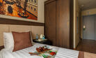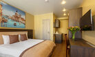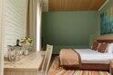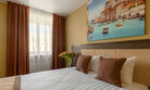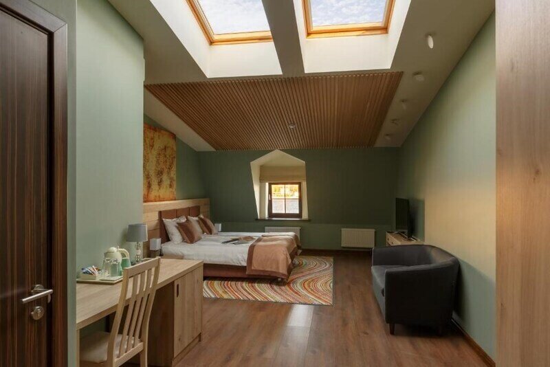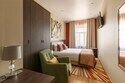 Просторный номер с интересной планировкой для работы и комфортного отдыха для пары или семьи с ребенком. Светлые пастельные тона с цветовыми акцентами создают атмосферу уюта.