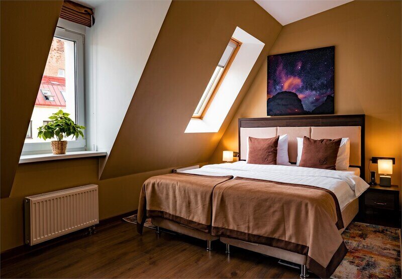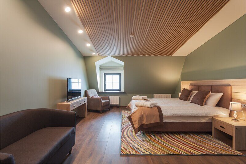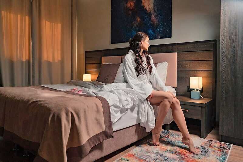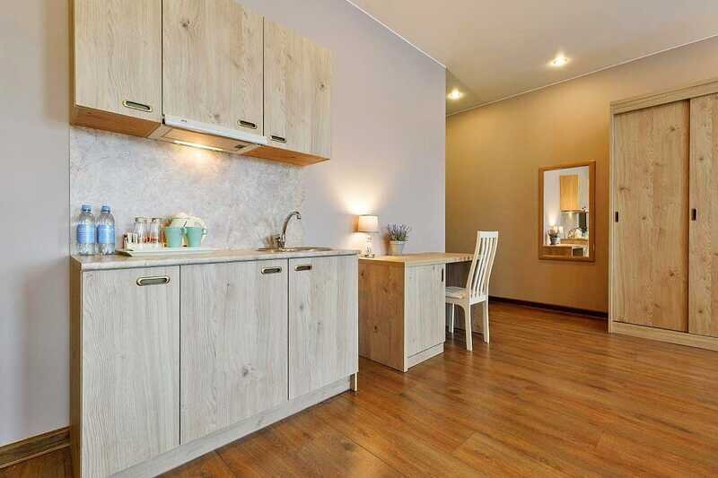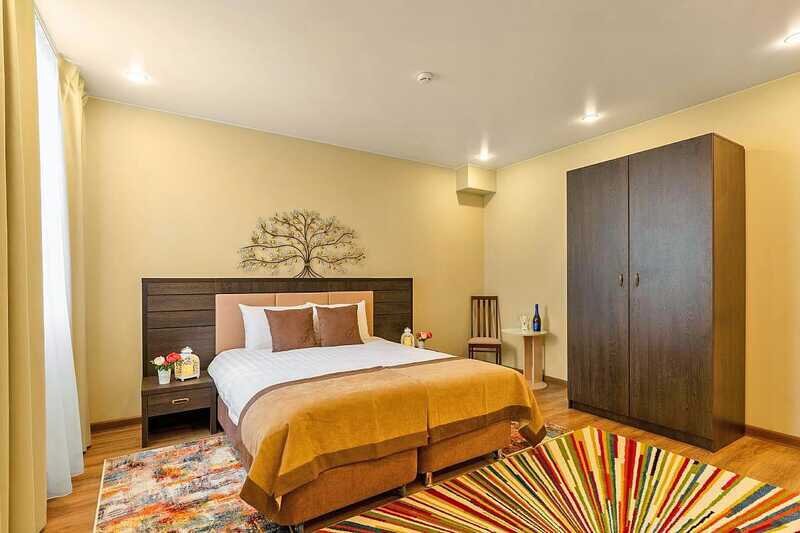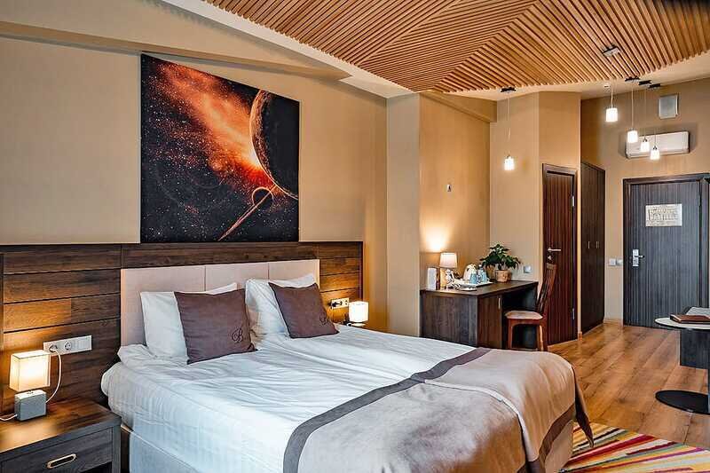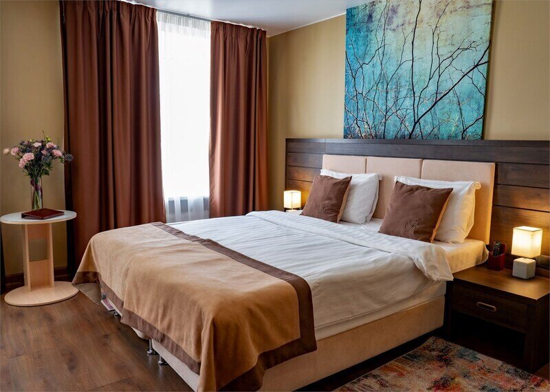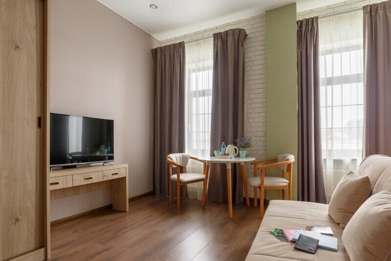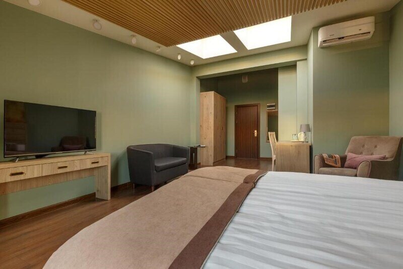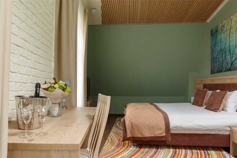 Премиальный номер с видом в тихий дворик-патио и собственной финской сауной — отличный вариант для спокойного отдыха вдали от городского шума. Для комфорта гостей в номере установлено массажное кресло. Мини-бар с алкогольными и безалкогольными напитками предоставляется комплиментарно при заезде.