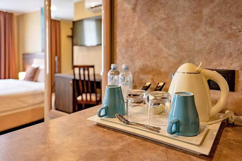 - минеральная вода, чай и кофе в номере