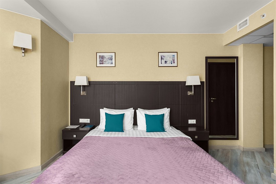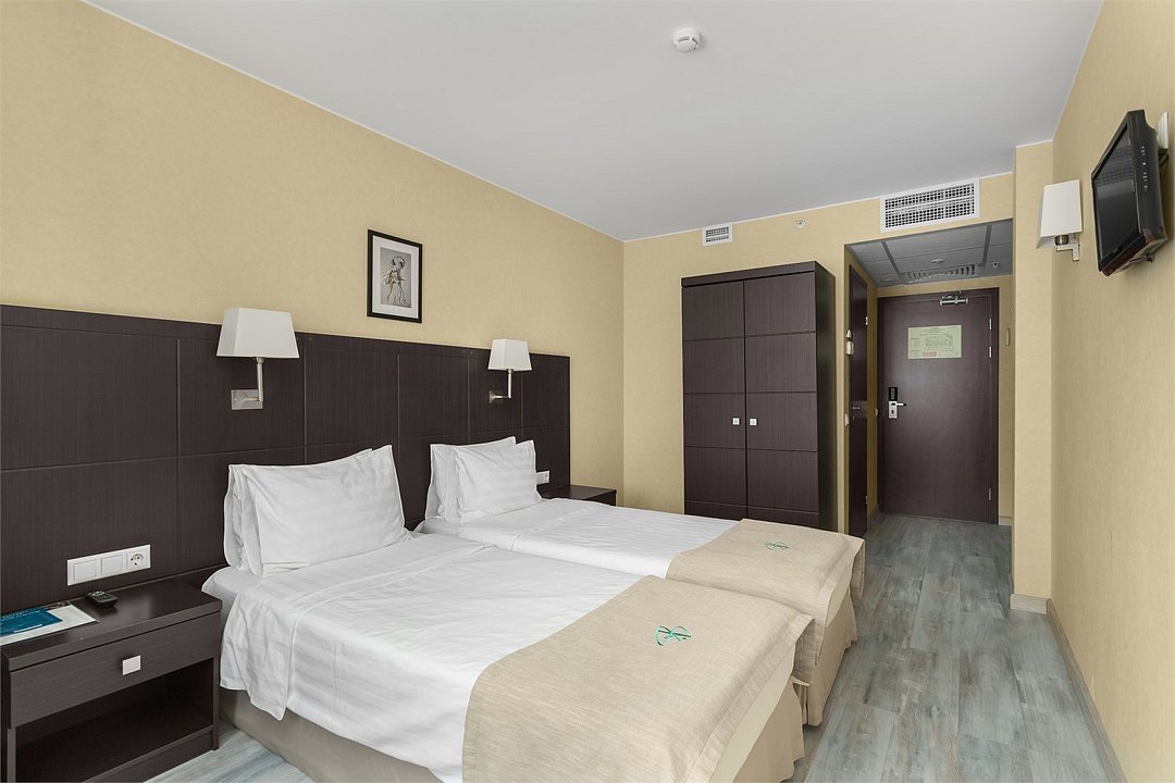 Стандартный номер для проживания одного или двоих Гостей с возможностью выбора двух раздельных или одной большой кровати. Оборудованные всем необходимым для качественного отдыха, стандартные номера отеля предлагают Гостям атмосферу комфорта и уюта. Номера оснащены мини-холодильниками. За дополнительную плату предоставляются халаты, тапочки и косметические принадлежности.Услуги и удобства