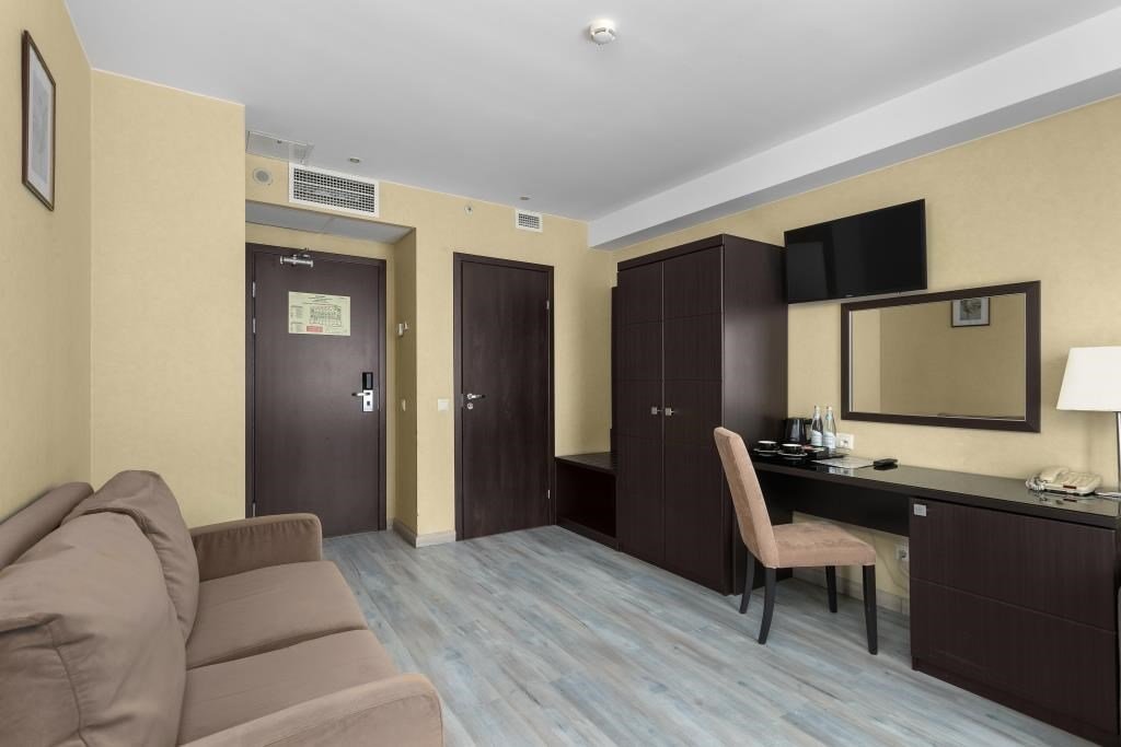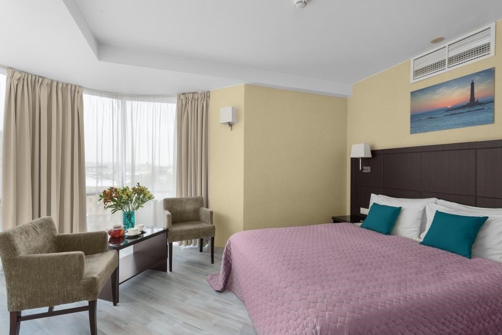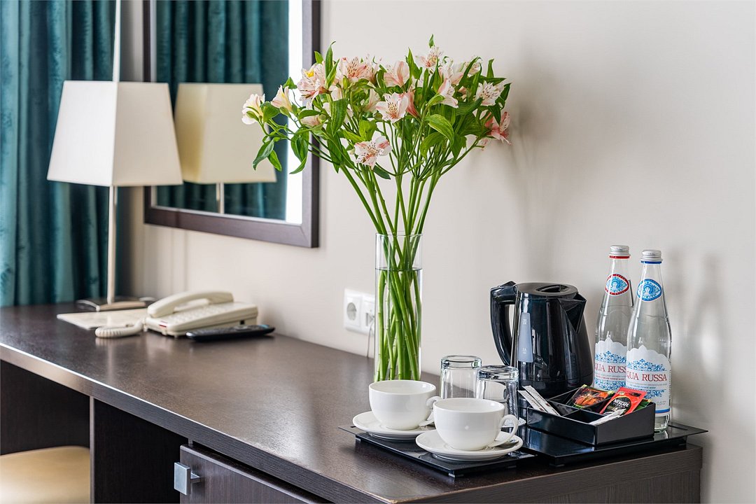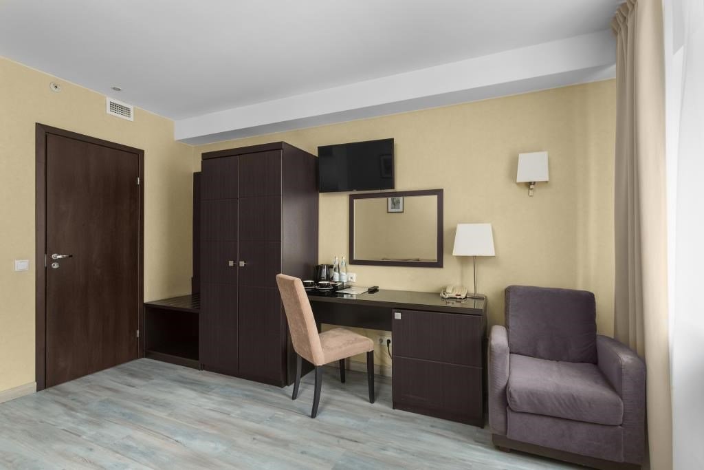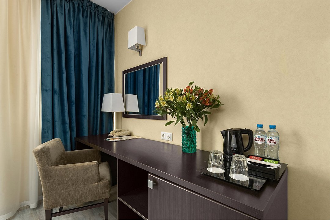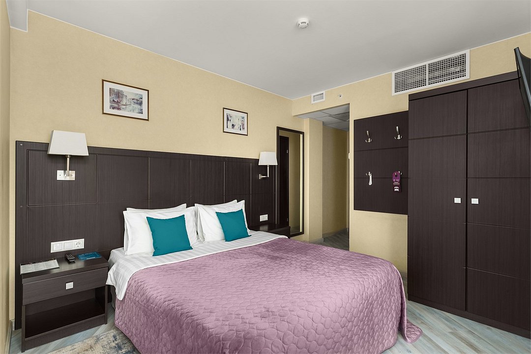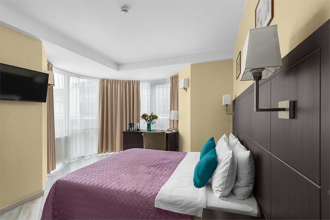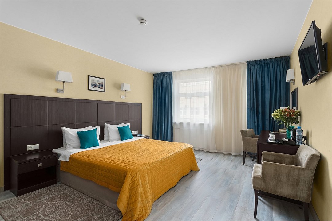 Любителям комфорта рекомендуем остановиться в номере с улучшенной планировкой, который выгодно отличается от стандартного большей площадью. Панорамное окно в сторону Малой Невки. Номера оснащены мини-холодильниками. За дополнительную плату предоставляются халаты, тапочки и косметические принадлежности.Услуги и удобства