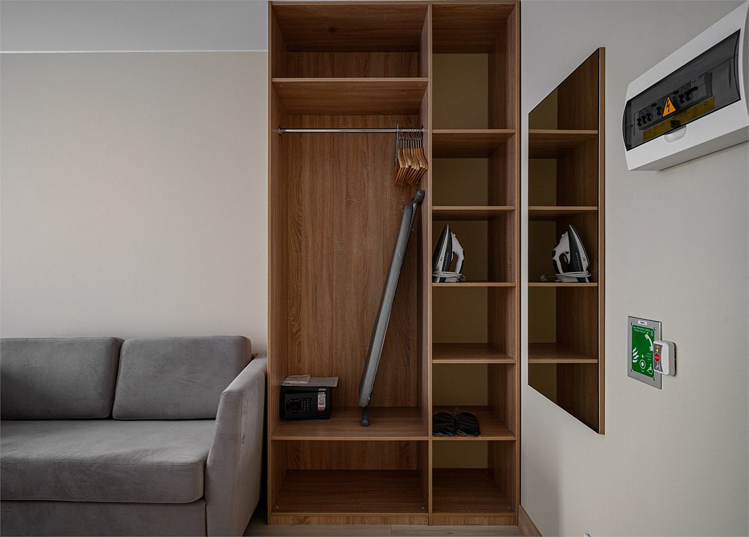Wi-Fi, телефон, светильник, фен, электронные замки, плита для приготовления пищи, микроволновая печь, душевая кабина, банные полотенца, тапочки, косметические средства, двуспальная кровать, стулья, шкаф для одежды, вешалки, журнальный столик, письменный стол, зеркало, набор посуды, сейф, чайник, унитаз, раковина, питьевая вода, отопление, душ, вид на город, кухонная посуда, стаканы, кухонная утварь, столовые приборы, стул, туалет, цифровое тв, раскладной диван, телевизор с плоским экраном, мини-холодильник, кухонный уголок, номер для некурящих, usb порт, гигиенический душ, двуспальный раскладной диван-кровать, вешалки-плечики, зеркало в полный рост, открытый шкаф, можно с питомцамиВ аппартаментах