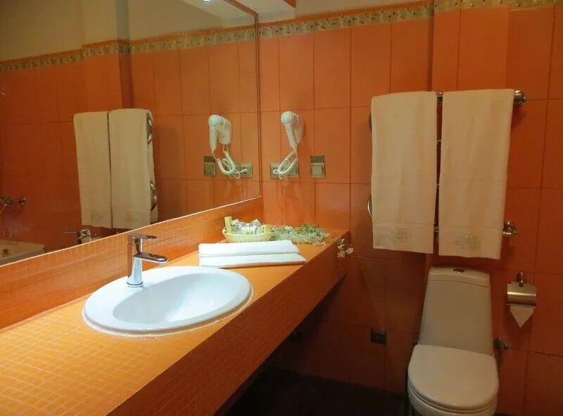 В ванной комнате: душ или ванная, мягкие полотенца, фен, туалетные принадлежности, халаты и тапочки. Номер De Luxe состоит из спальной и рабочей зон, отличается большой площадью (30-35 кв.м.) и повышенной комфортностью.